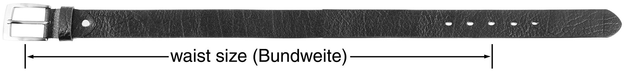 Let op: Onze riemen met gesp meten de taillemaat zonder gesp tot aan het middelste gat (+/- 5 cm). De totale lengte wordt gemeten met de gesp.