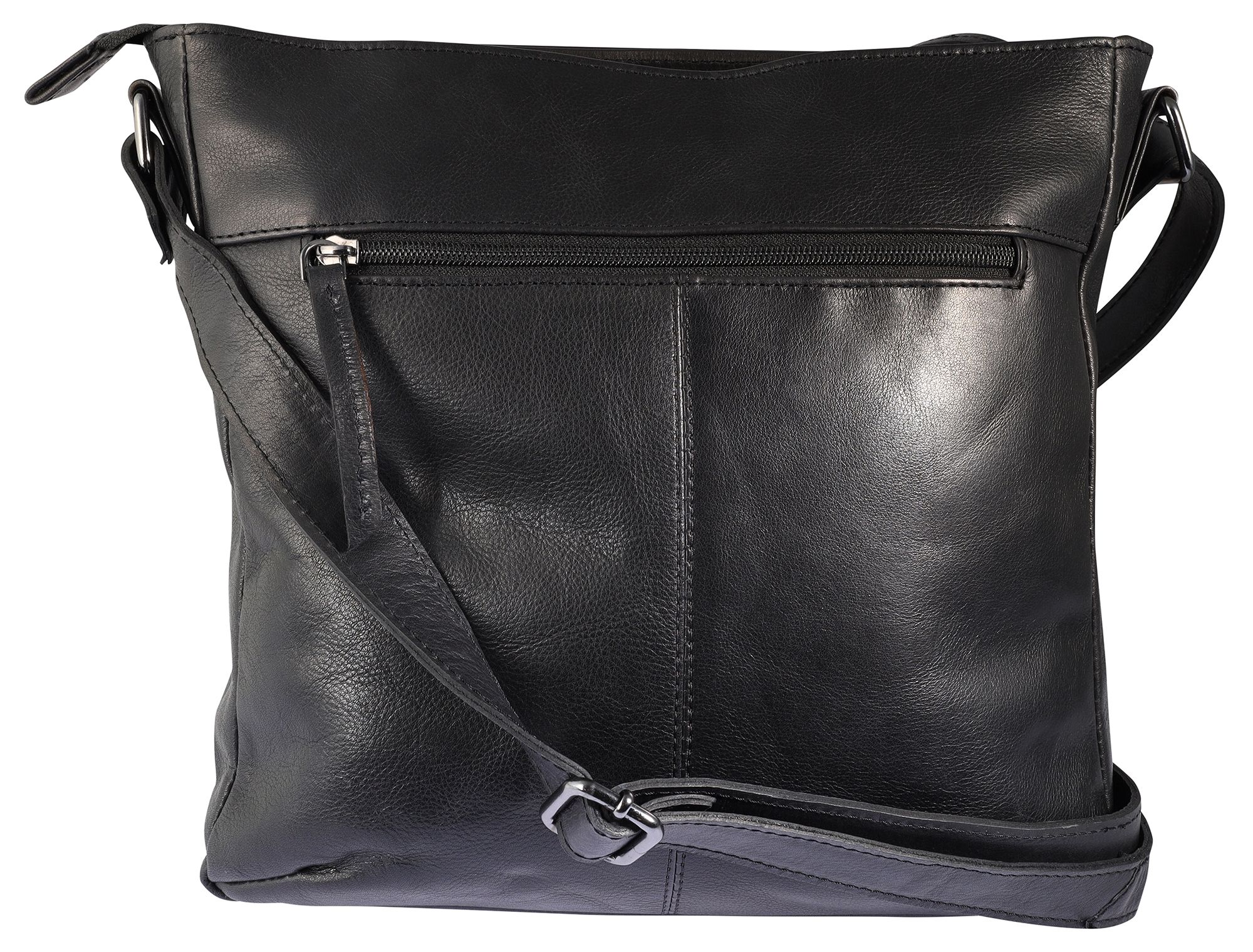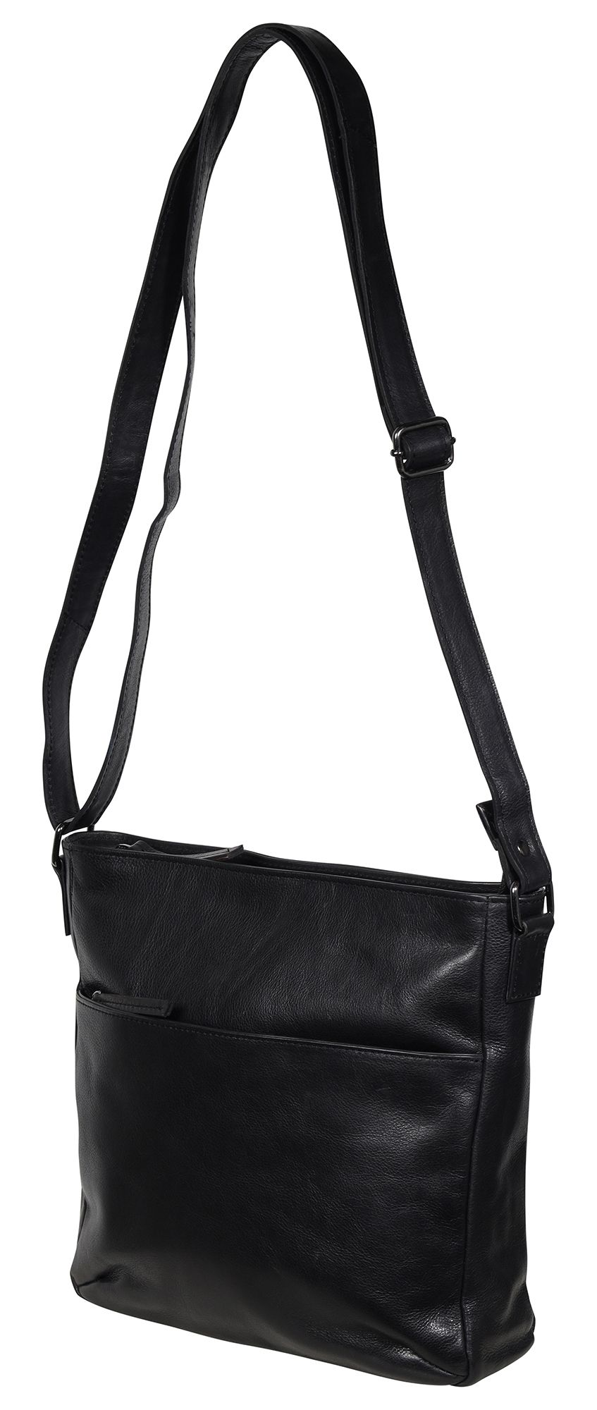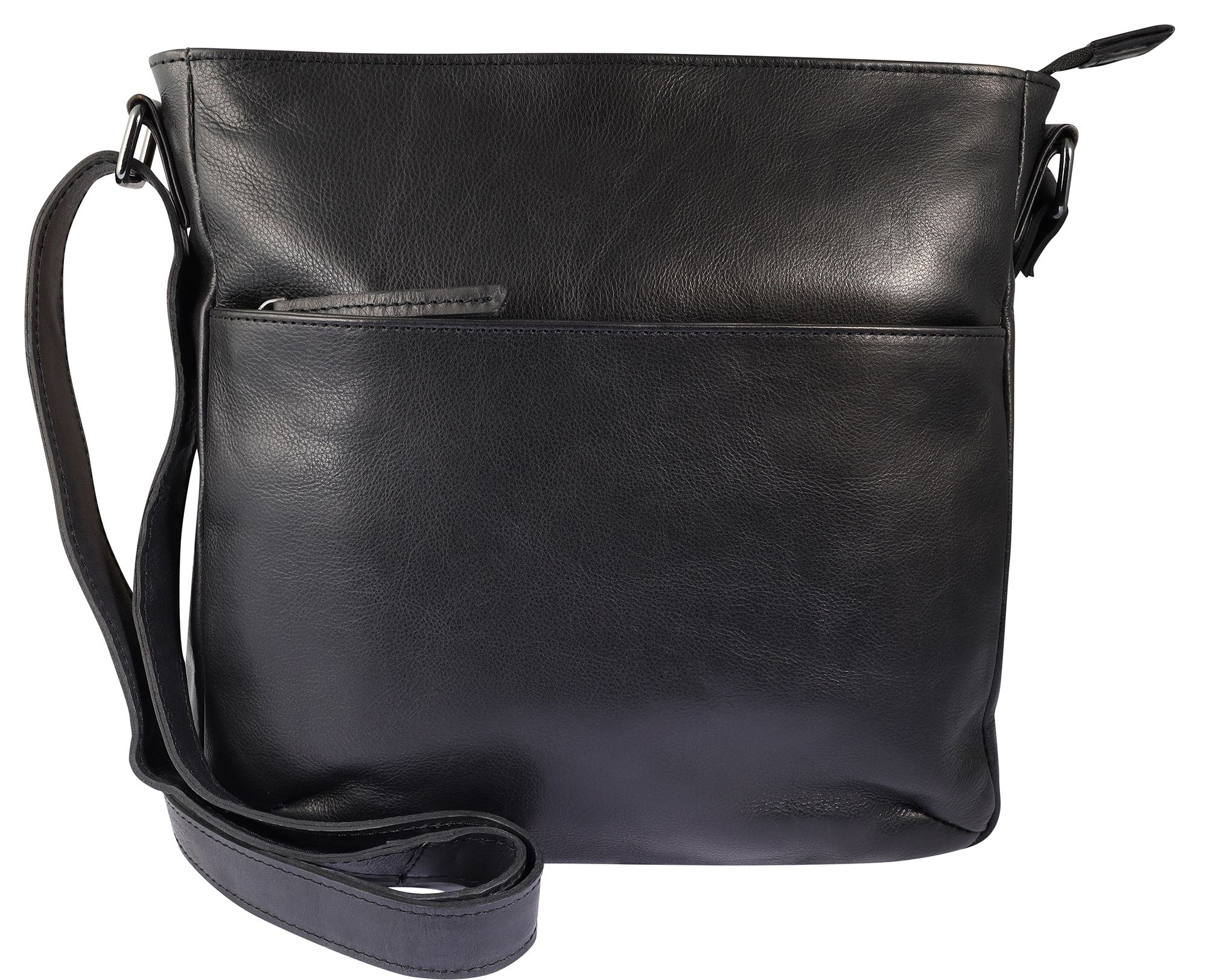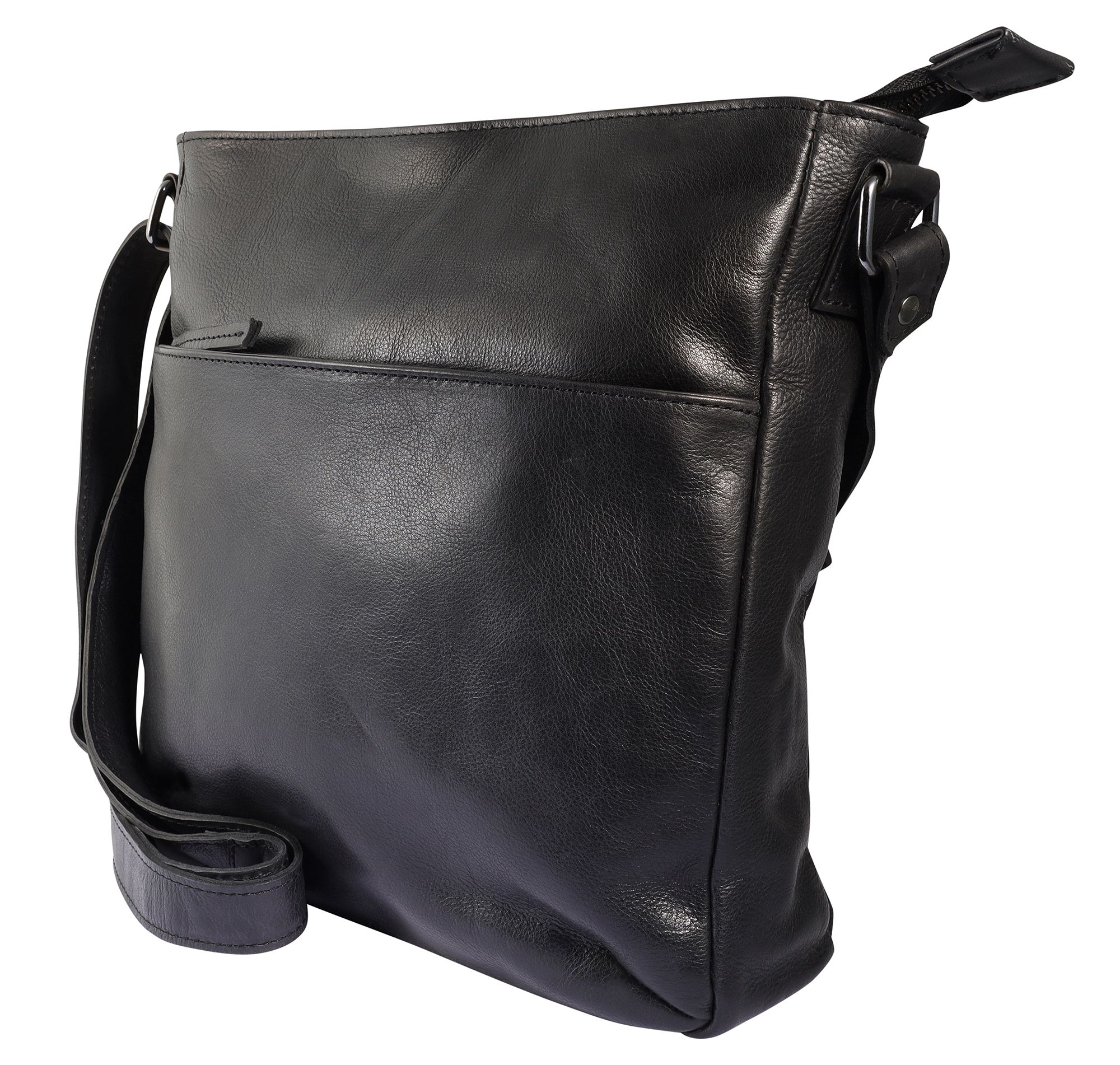 Productinformatie "Leonardo Verrelli, Echtleder Umhängetasche, Reißverschluss, verstellbare Riemen, schwarz"