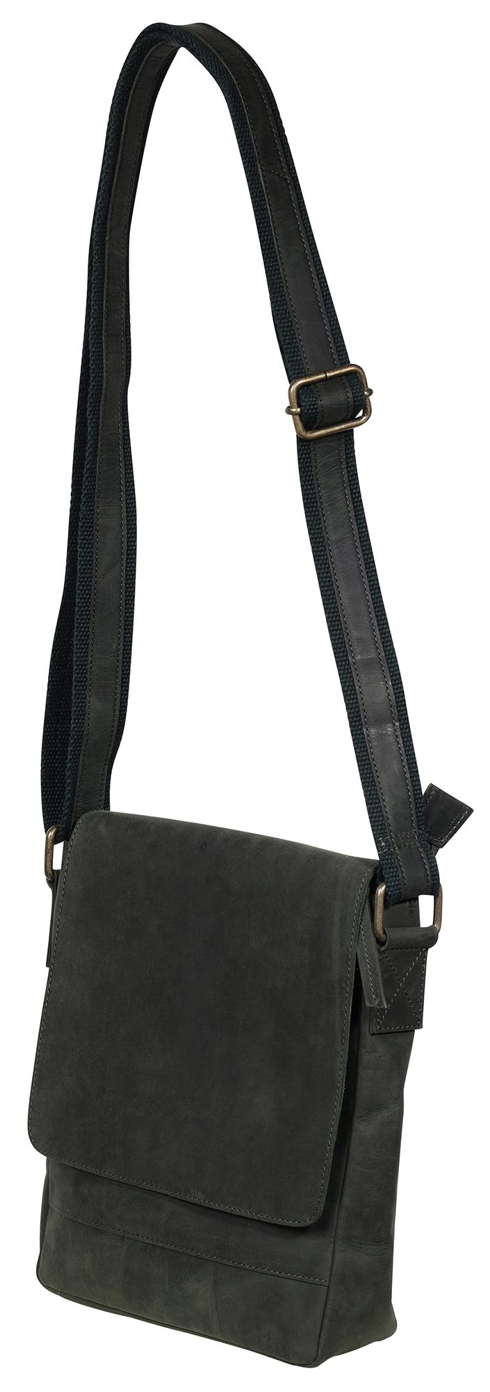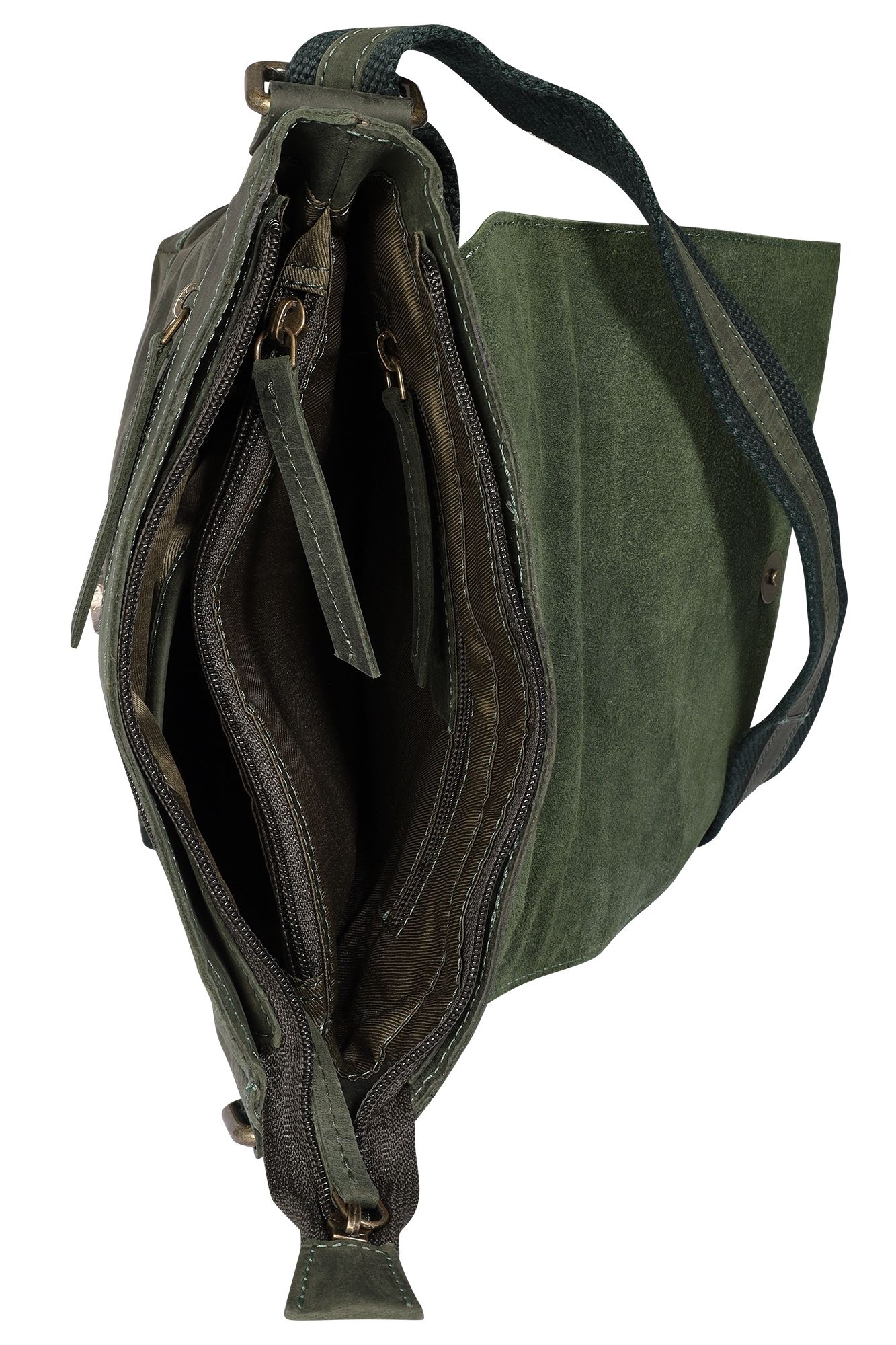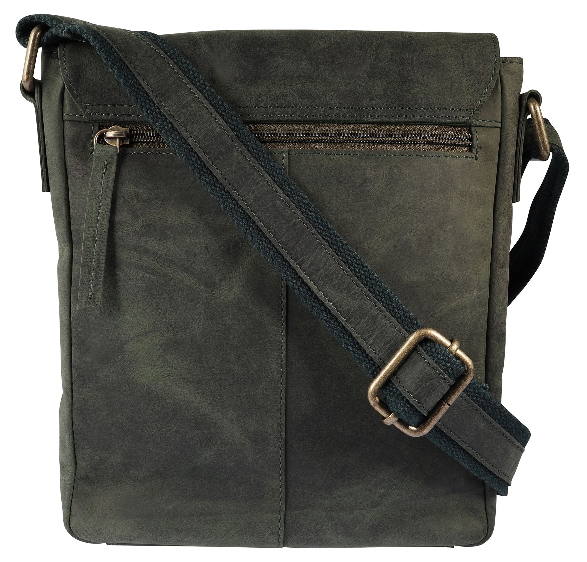 Productinformatie "Leonardo Verrelli, Echtleder Umhängetasche, verstellbarer Riemen, Überschlag mit Magnetverschluss. waldgrün"