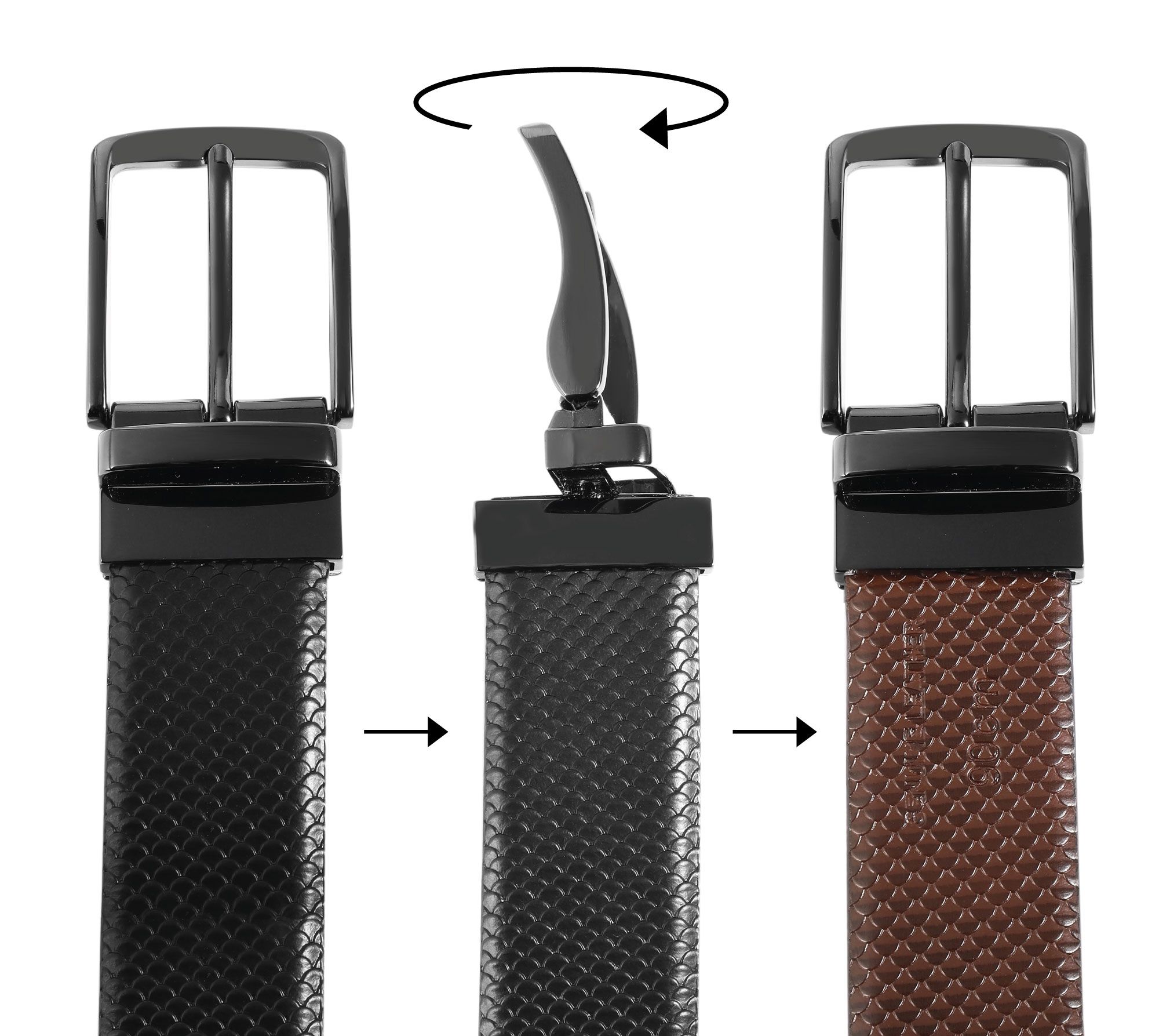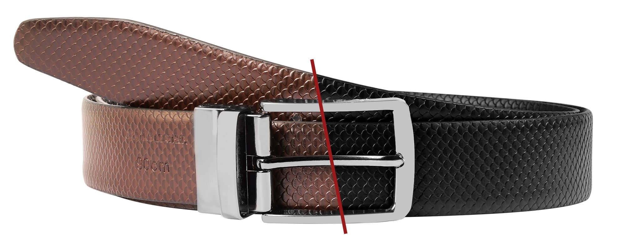 Productinformatie "Leonardo Verrelli Echtleder Wendegürtel mit Box, Krokoprägung, kürzbar, schwarz/dunkelbraun, 90 cm"