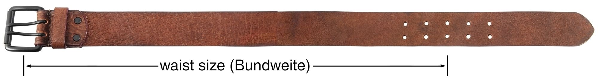 De bruine echt leren herenriem van Leonardo Verrelli is gemaakt van buffelleer en heeft een sterk generfd oppervlak. De riem is 4,4 cm breed, 0,4 cm hoog en heeft een taillemaat van 115 cm tot 125 cm. De riem heeft een dubbele gesp van metaal die met de hand is genaaid. De gaten voor de gespen zijn daarom gerangschikt in twee rijen met een tussenruimte van 2,5 cm. De gesp is zwart gecoat, wat de riem een elegante uitstraling geeft. Een bijzonder kenmerk is dat de riem op elke gewenste lengte kan worden afgeknipt. Hiervoor moeten twee schroeven onder de dubbele gesp worden losgedraaid met een schroevendraaier. De herenriem is een mooie casual riem die op verschillende manieren gecombineerd kan worden.