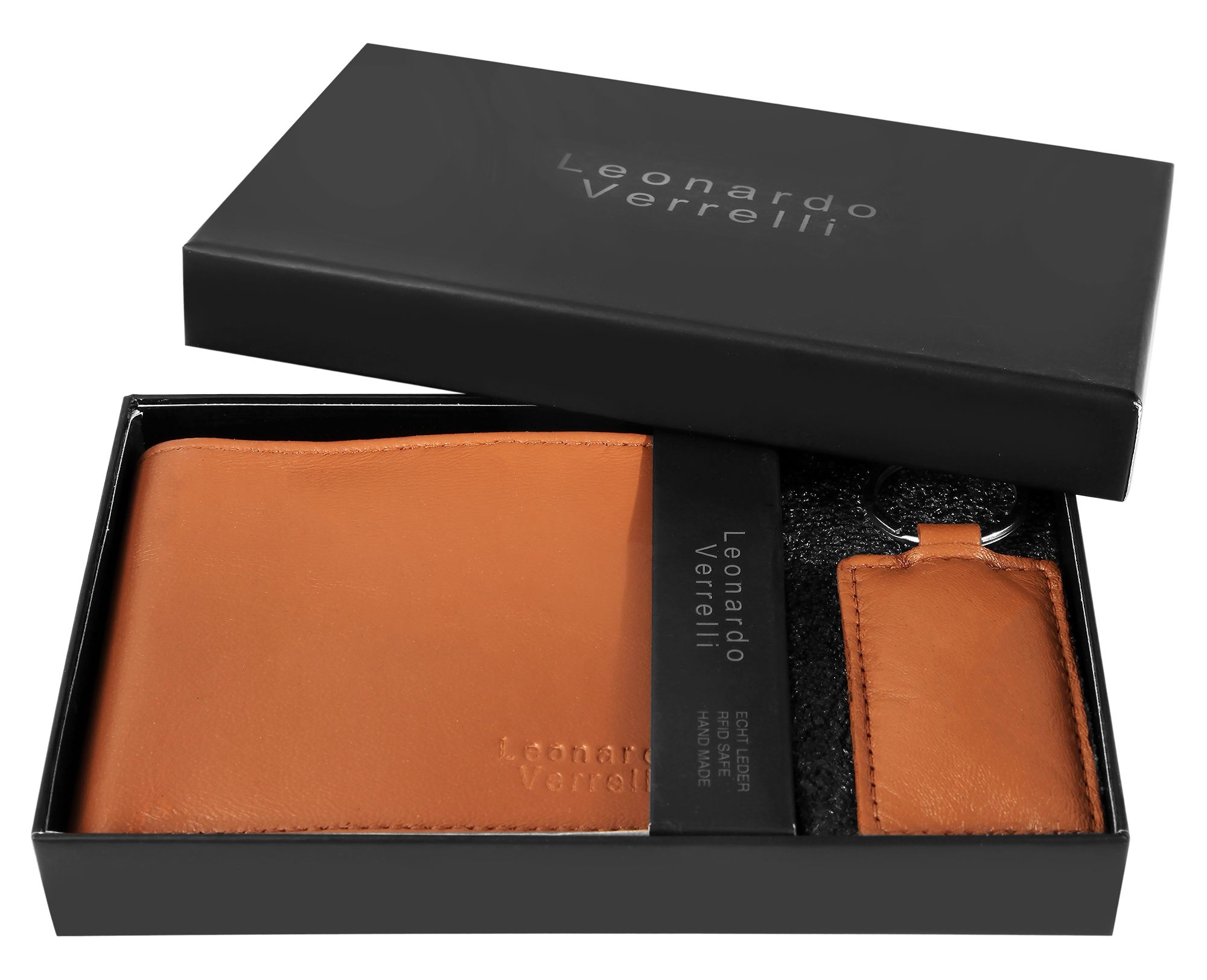 Productinformatie "Leonardo Verrelli Geschenkset mit Geldbörse und Schlüsselanhänger aus Echtleder"