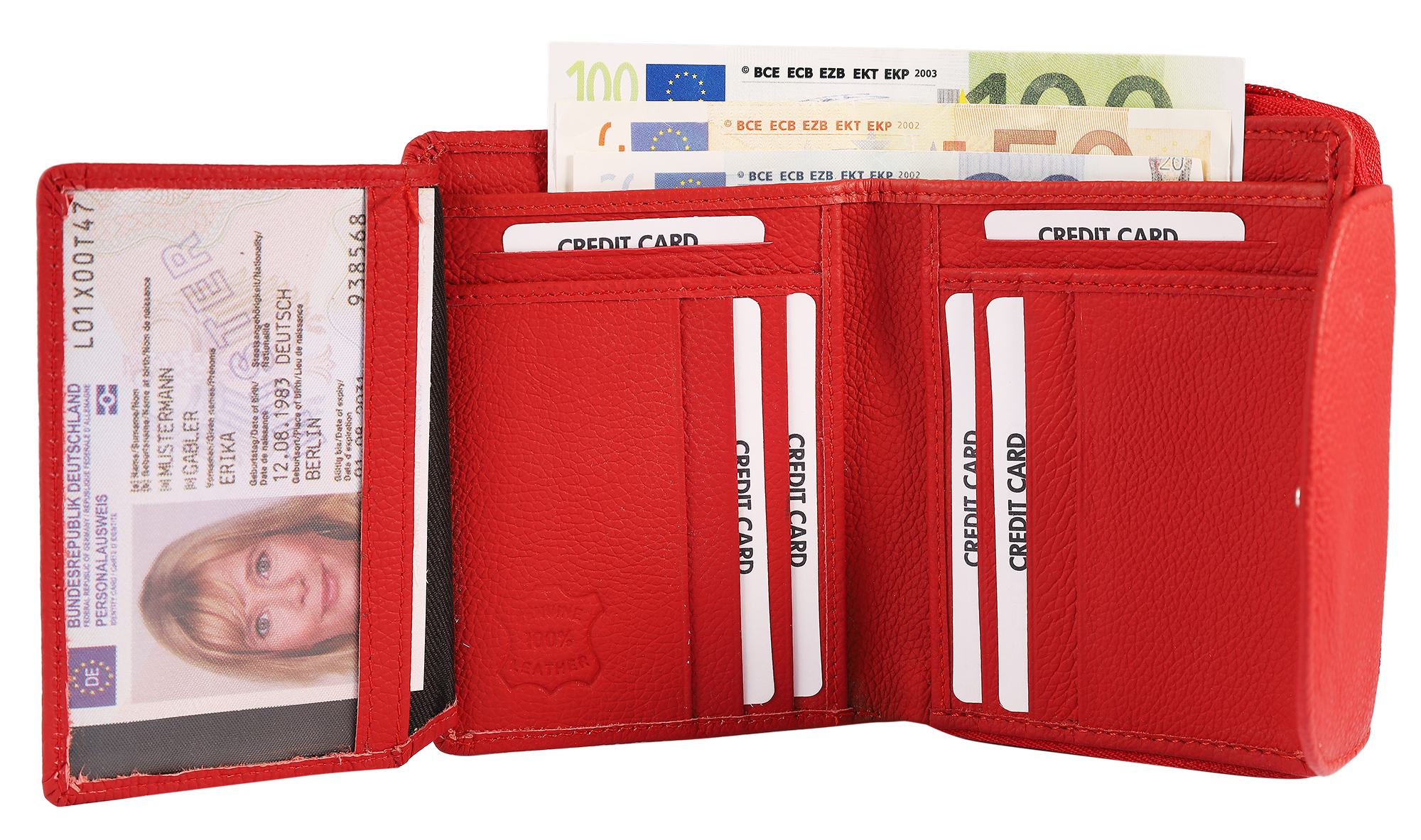 Zacht lamsleer, een explosieve verscheidenheid aan kleuren, grote opbergruimte voor hem en haar ─ praktisch en modern gecombineerd in één portemonnee. De portemonnee met vakken, sommige in liggend formaat en sommige in staand formaat, wordt beschermd door een verstelbare drukknoopsluiting om je pasjes in de 13 kaartsleuven en je ID-kaart en contant geld veilig op hun plaats te houden. Een vak voor muntgeld is aan de buitenkant toegankelijk via een ritssluiting en is aan de binnenkant verdeeld in twee vakken om grotere en kleinere munten van elkaar te scheiden. De portemonnee wordt aangevuld met een vak voor bankbiljetten en een vak voor ID-kaarten.