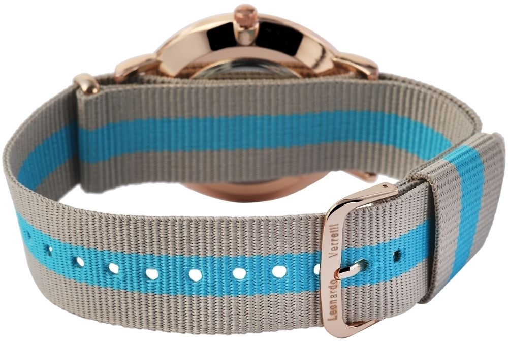 Productinformatie "Leonardo Verrelli Unisexuhr mit Textilarmband, grau hellblau roségoldfarbig"