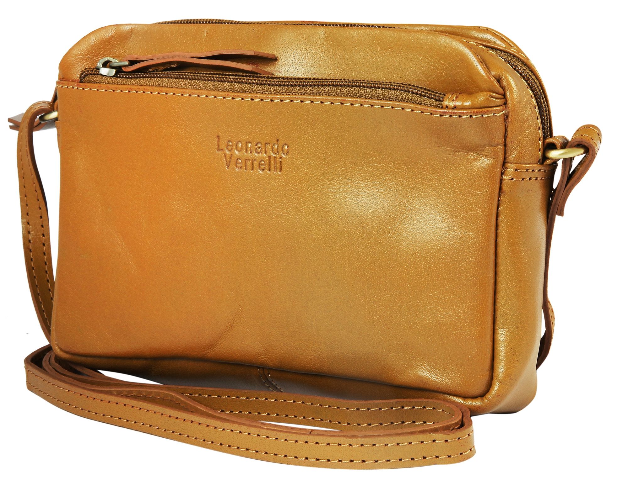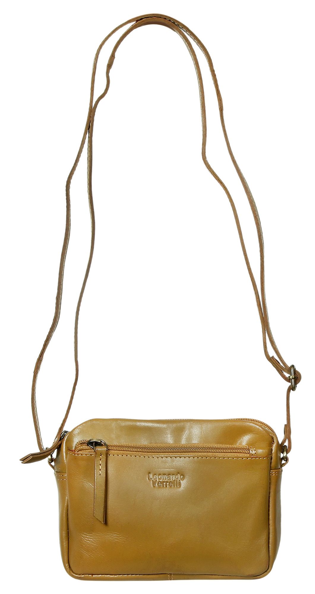 Productinformatie "Leonardo Verrelli echt lederen schoudertas dameshandtas, lichtbruin"