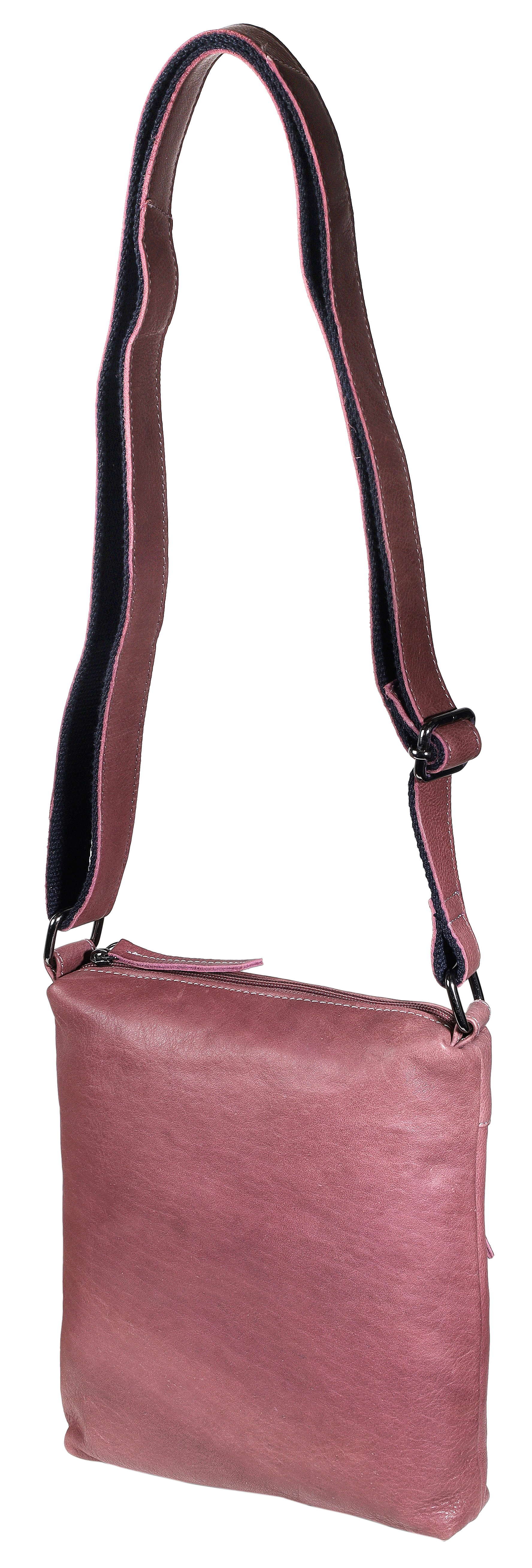 Productinformatie "Leonardo Verrelli, echt lederen schoudertas, gewassen, verstelbare riem, ritssluiting, paars"