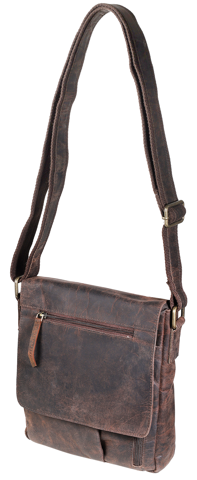 Productinformatie "Leonardo Verrelli, echt lederen schoudertas, verstelbare riem, klep met magneetsluiting, donkerbruin"