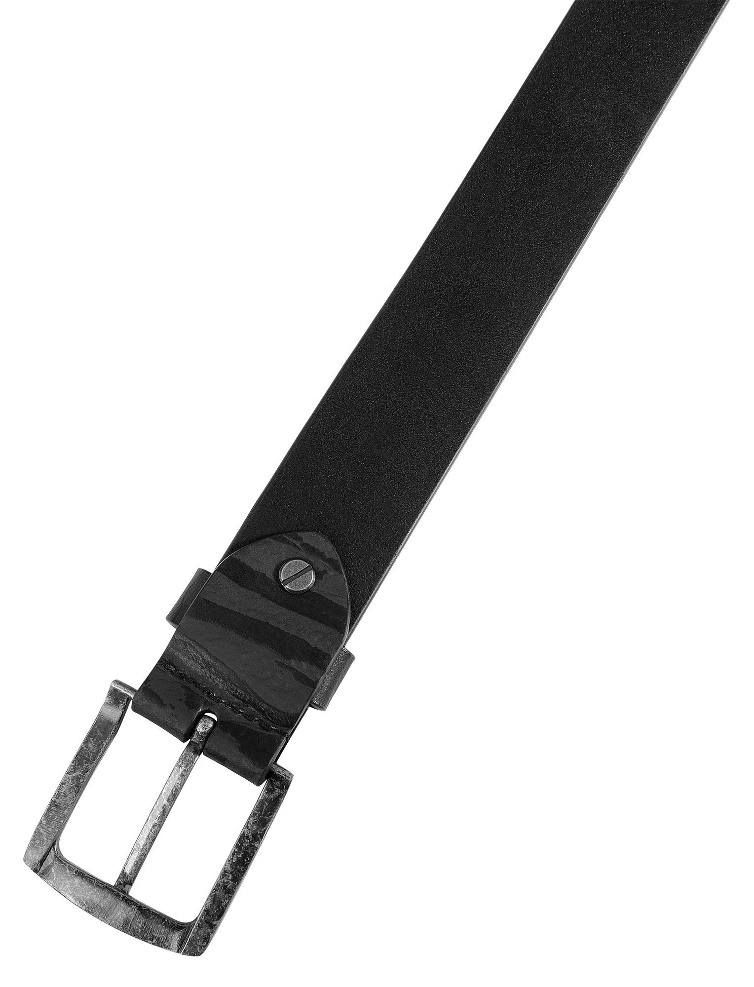 De gesp in mat zilver met extra gezwarte details geeft de zwarte riem een moderne basic look.