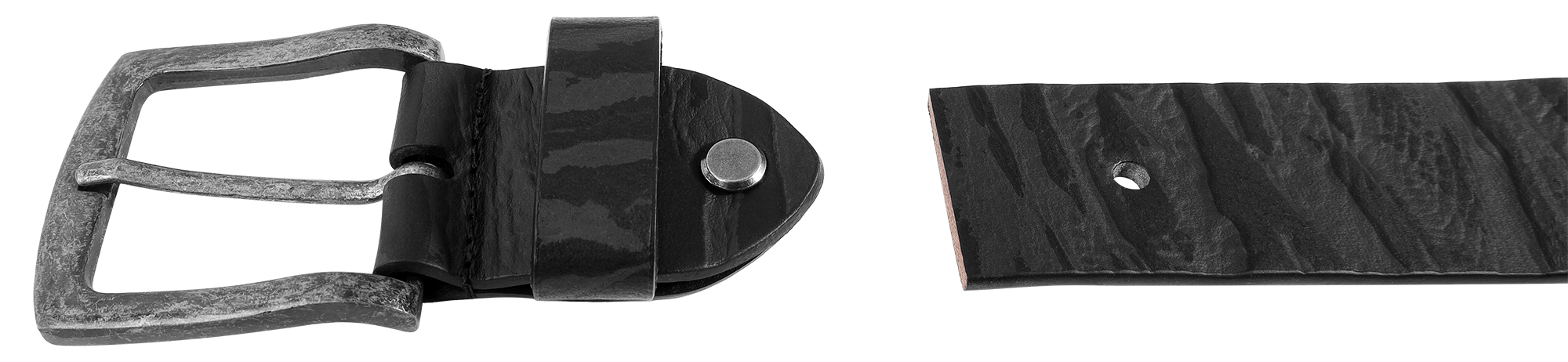 Gemaakt van echt leer (buffelleer), heeft het oppervlak van de riem een lichte, natuurlijke littekenvorming die de hoge kwaliteit benadrukt.