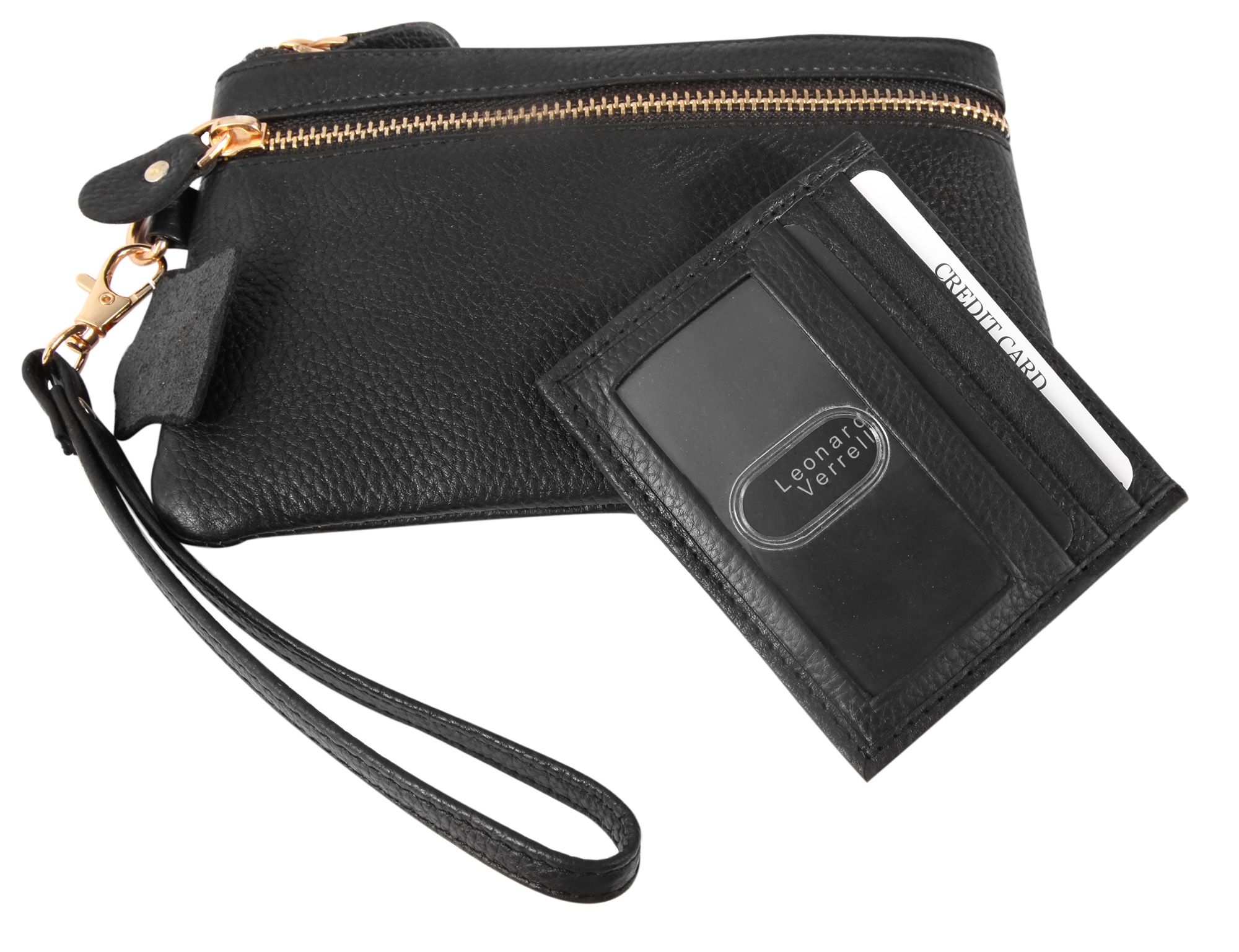 Productinformatie "Leonardo Verrelli geschenkset met kleine handtas en kaarthouder, zwart"