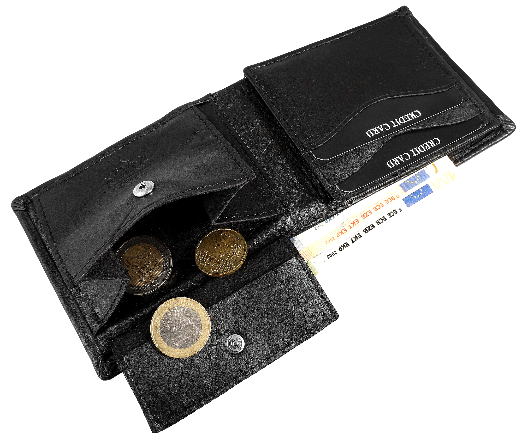 - Een muntvak met drukknoop om kleingeld veilig en gemakkelijk toegankelijk te houden