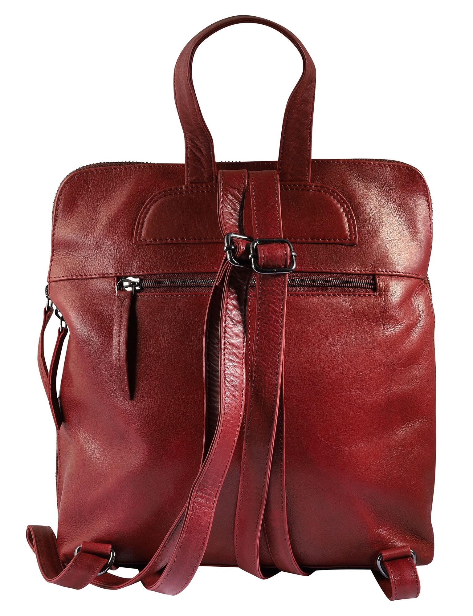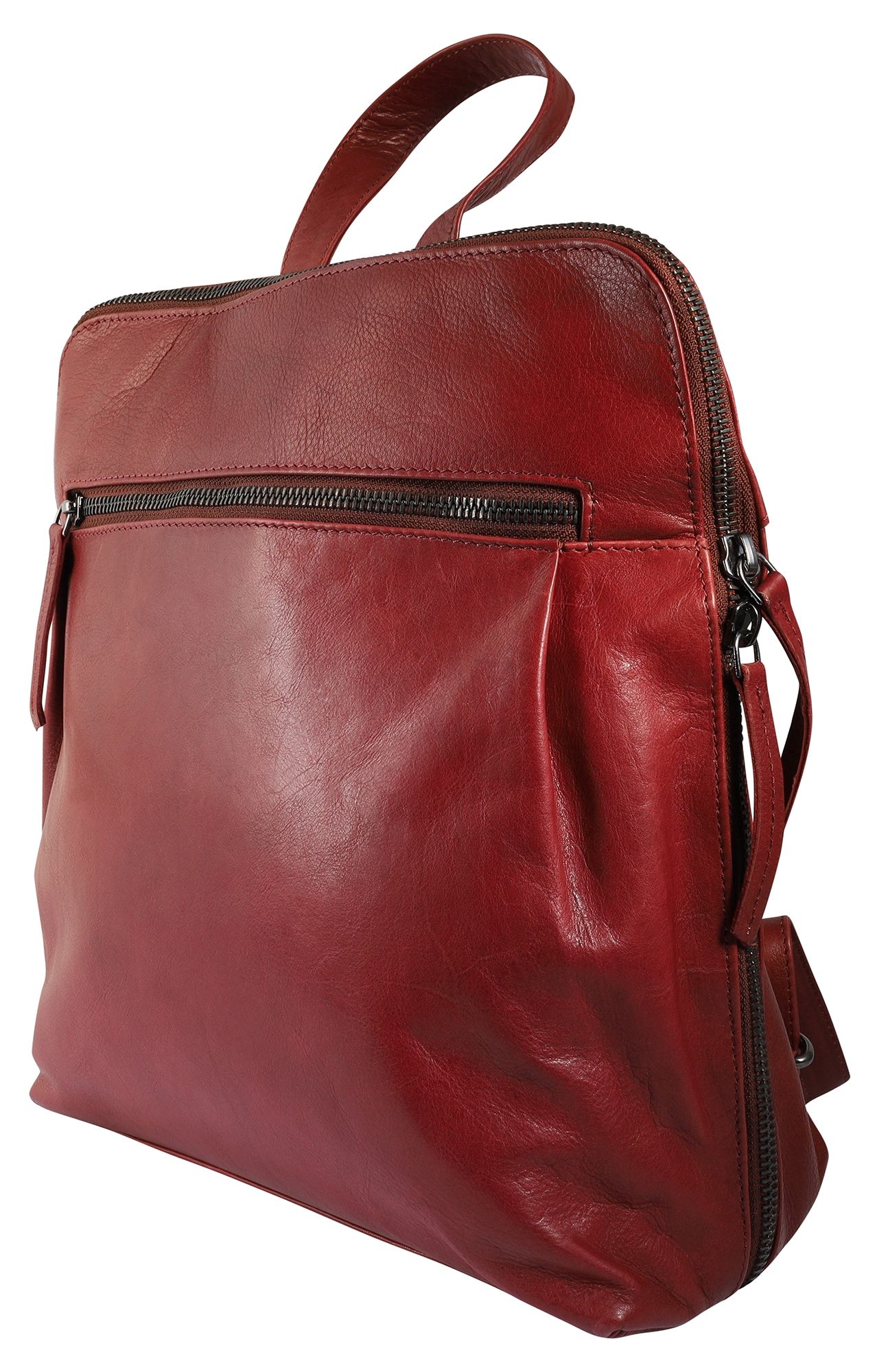Productinformatie "Leonardo Verrelli, rugzak/tas van echt leer, ritssluiting, verstelbare riemen, rood"