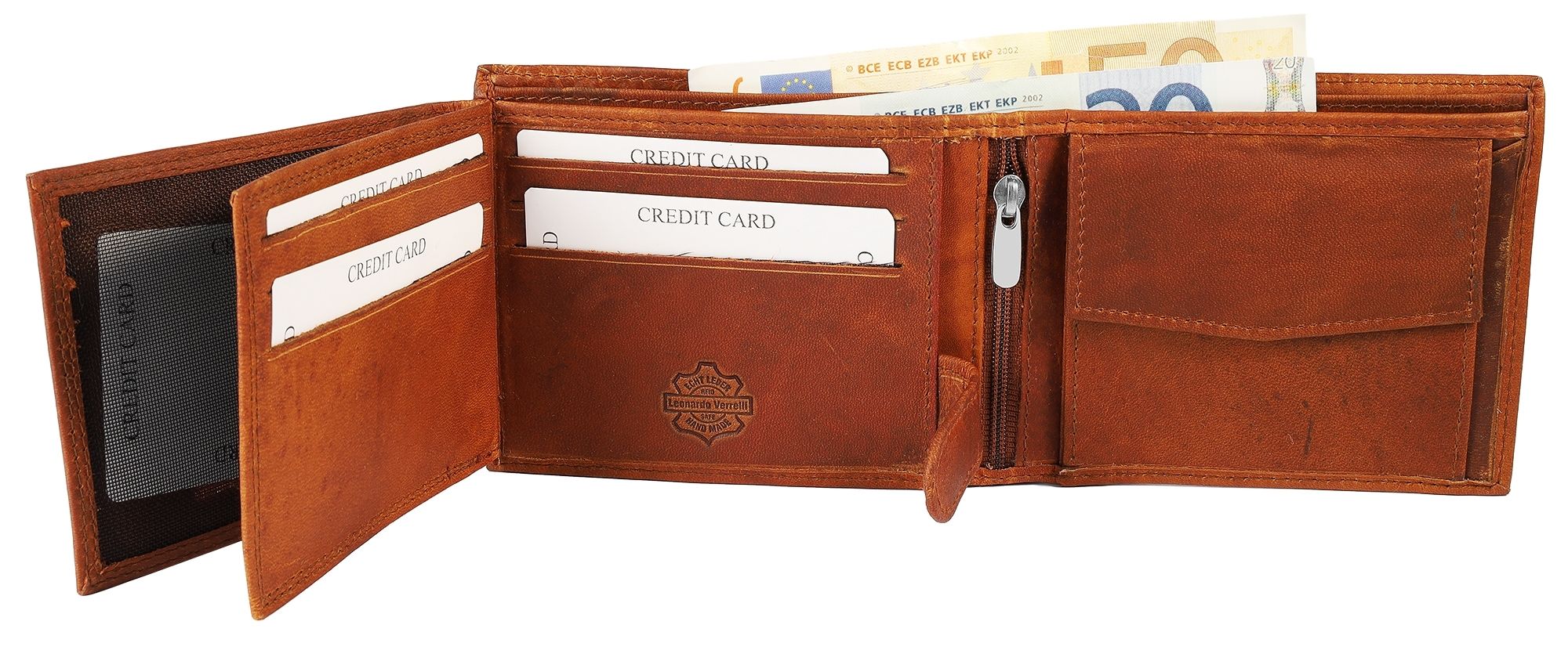 Productinformatie ""Levi" - Tan, Leonardo Verrelli Echt Leder Geldbörse mit RFID-Safe, querformat"