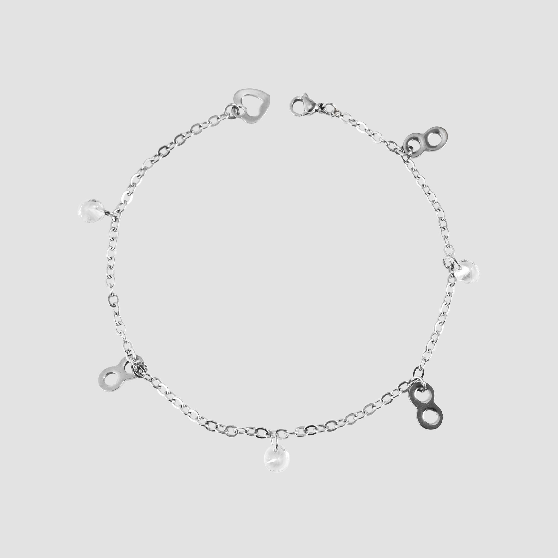 Productinformatie ""Lia", Akzent Edelstahl Fußkette, Similibesatz, Infinity, silberfarbig, 25 cm"