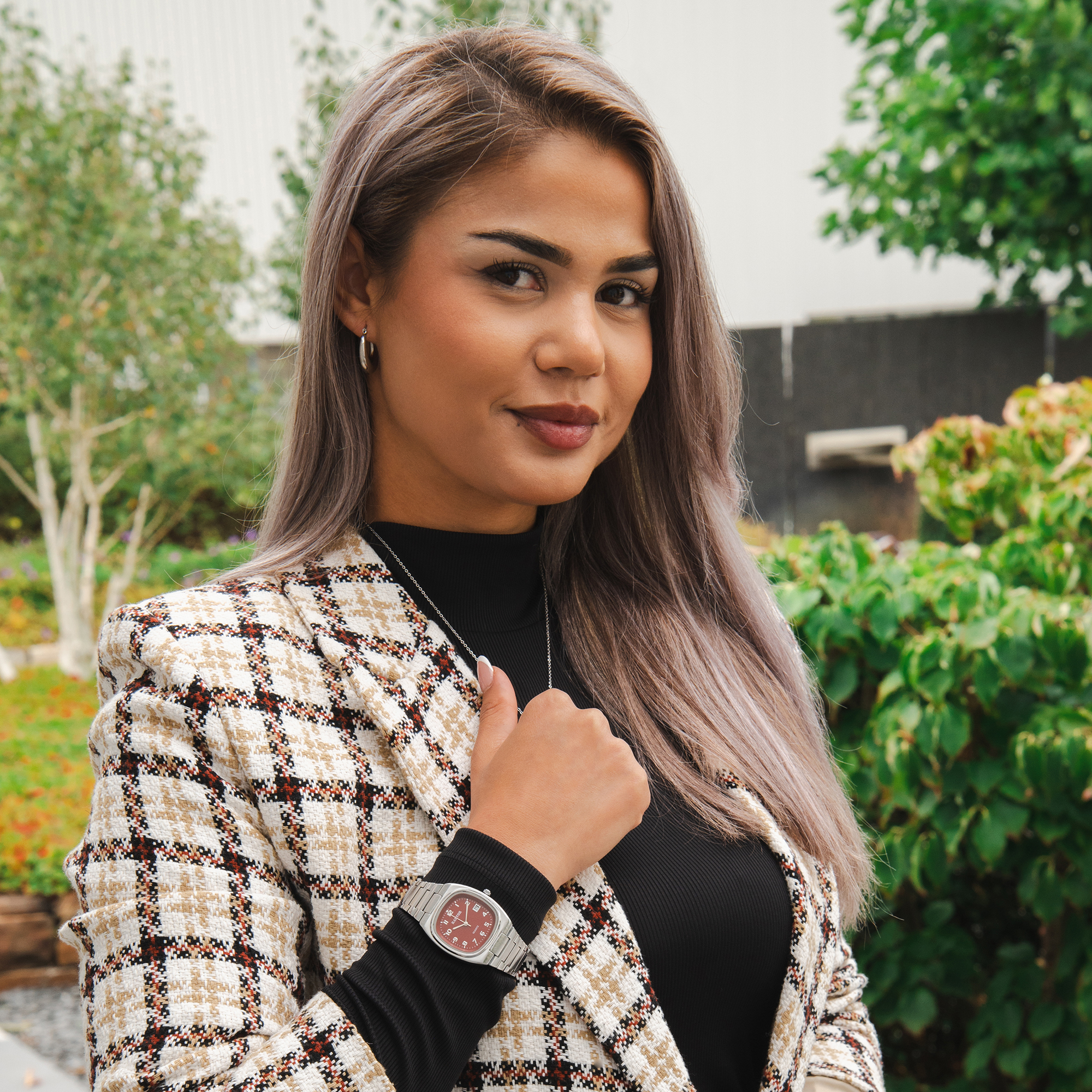 Modern, stijlvol en met trendy kleuraccenten - de "Lina Mae" is de perfecte metgezel voor elke outfit.