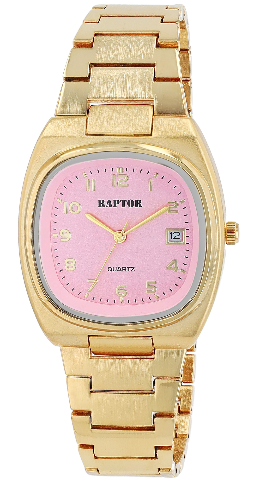 Productinformatie ""Lina Mae" Raptor dameshorloge met roestvrijstalen armband, 3ATM, goudkleurig/roze"