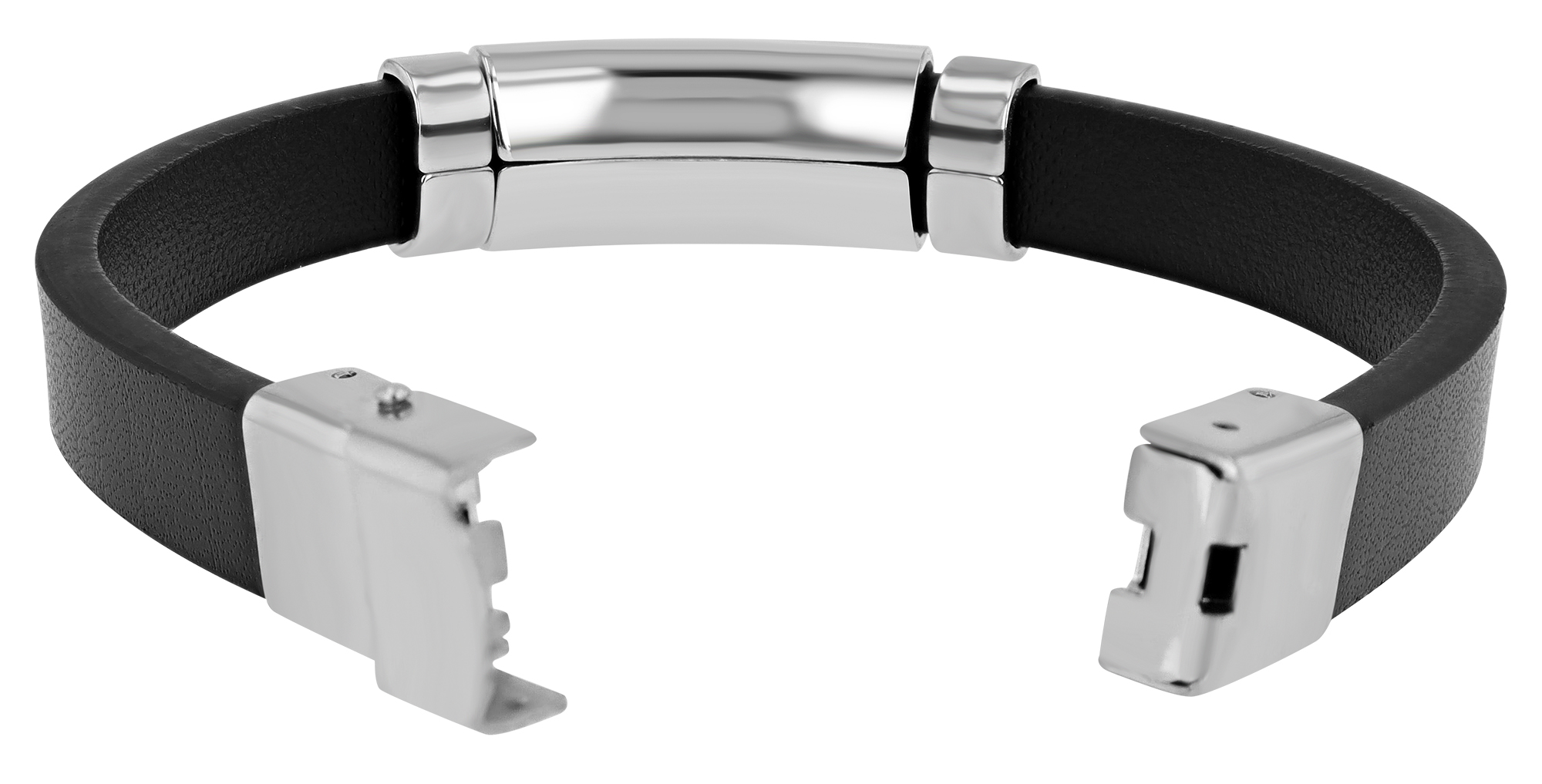 Bovendien zijn aan weerszijden van het graveerplaatje twee roestvrijstalen elementen bevestigd, die de armband een speciale touch geven.