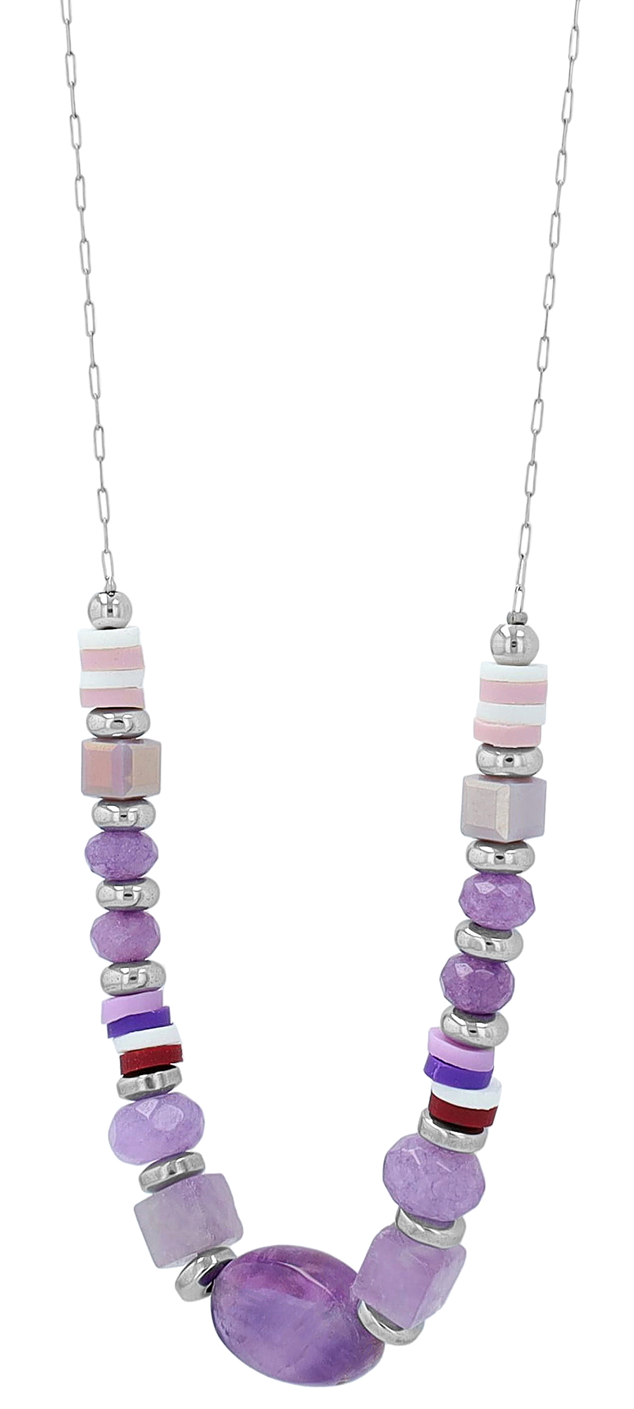 Productinformatie ""Lowyse" Edelstahlkette mit Naturstein (Amethyst) 42 + 3 cm"