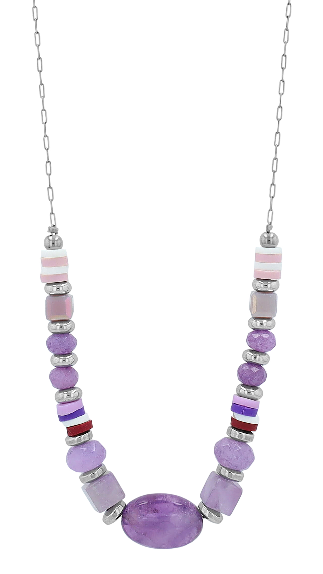 "Lowyse" Edelstahlkette mit Naturstein (Amethyst) 42 + 3 cm