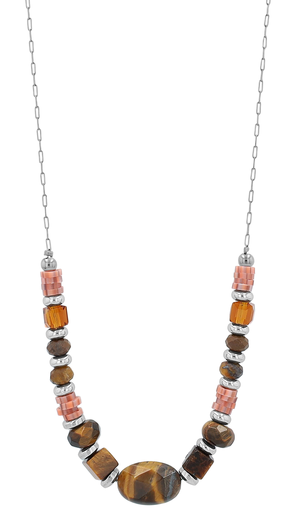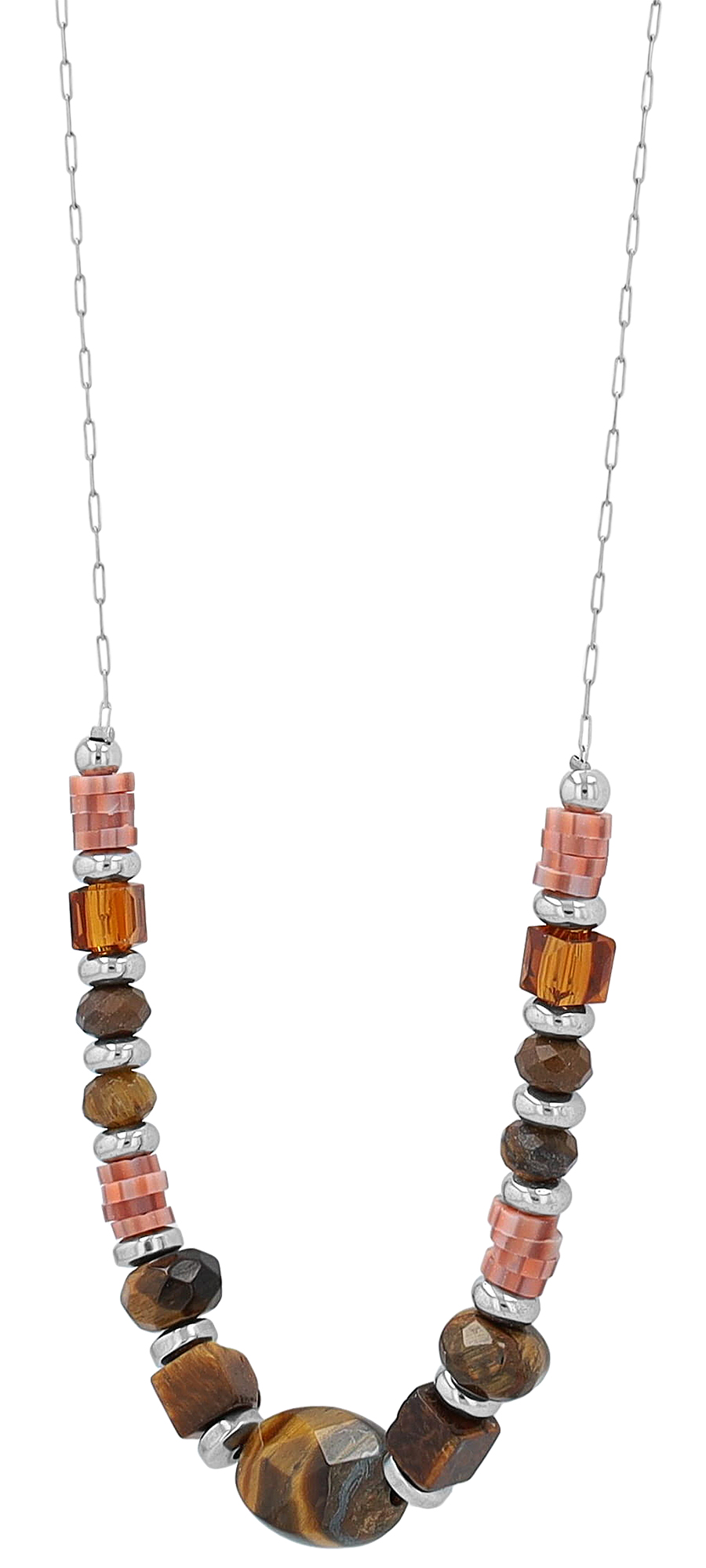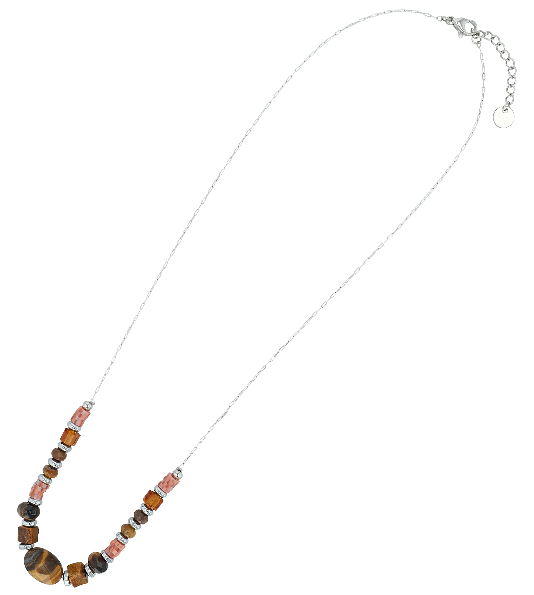 Productinformatie ""Lowyse" roestvrijstalen ketting met natuursteen (tijgeroog) 42 + 3 cm"