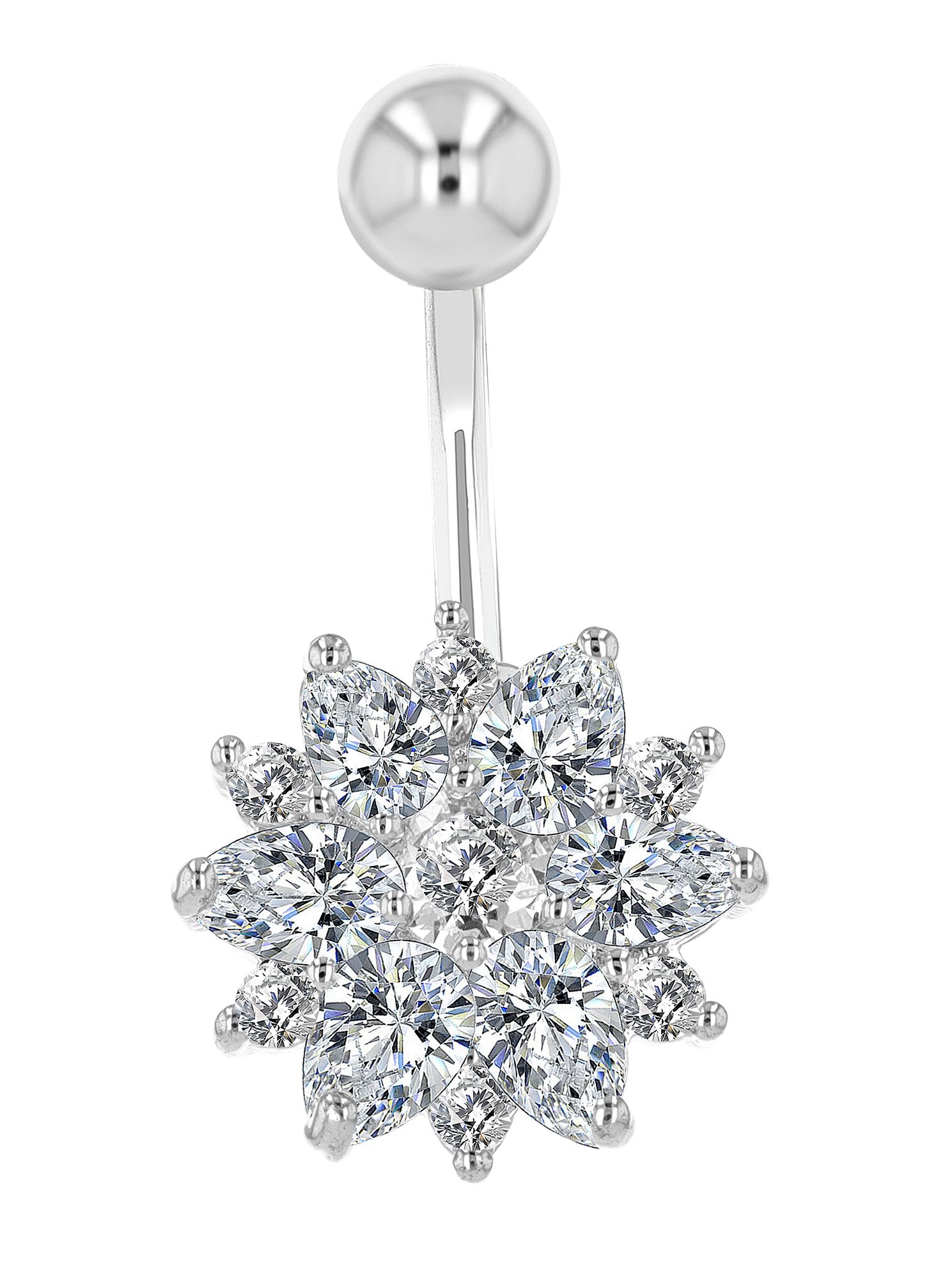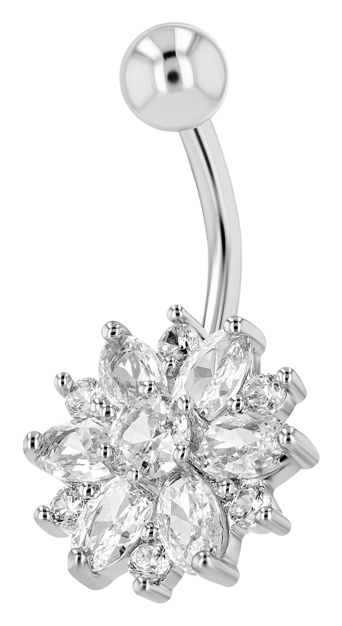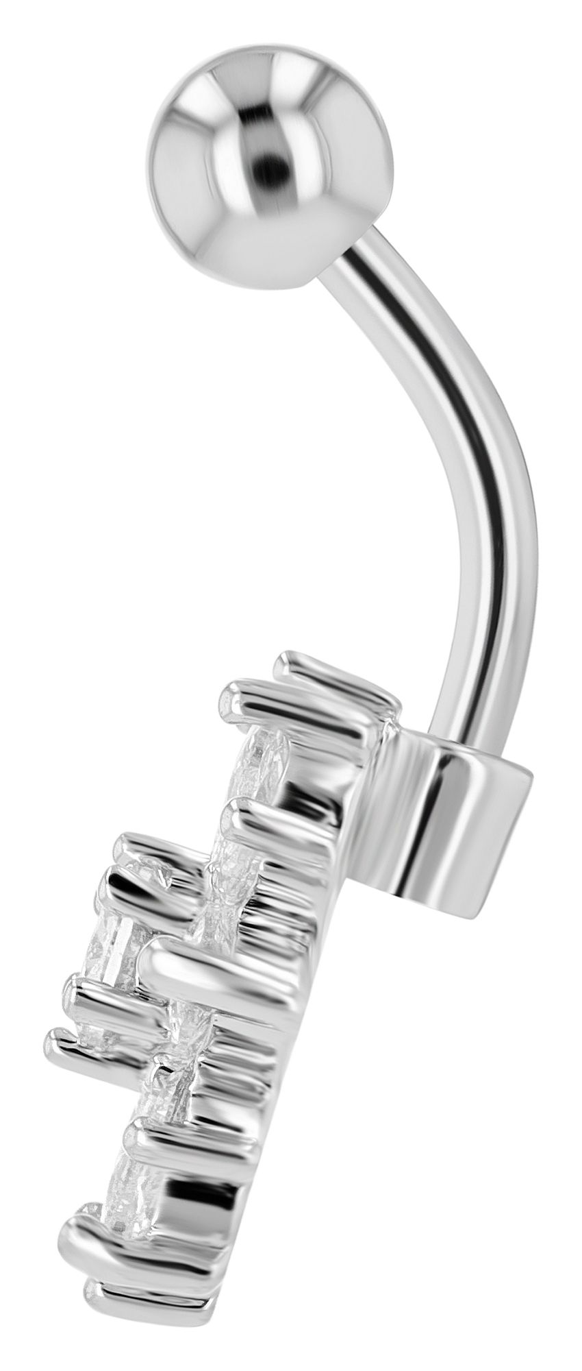 "Mirinda" Edelstahl-Bronze Bauchnabelpiercing, Stablänge 11 mm/ Stabstärke 2 mm, Zirkonia, silberfarben
