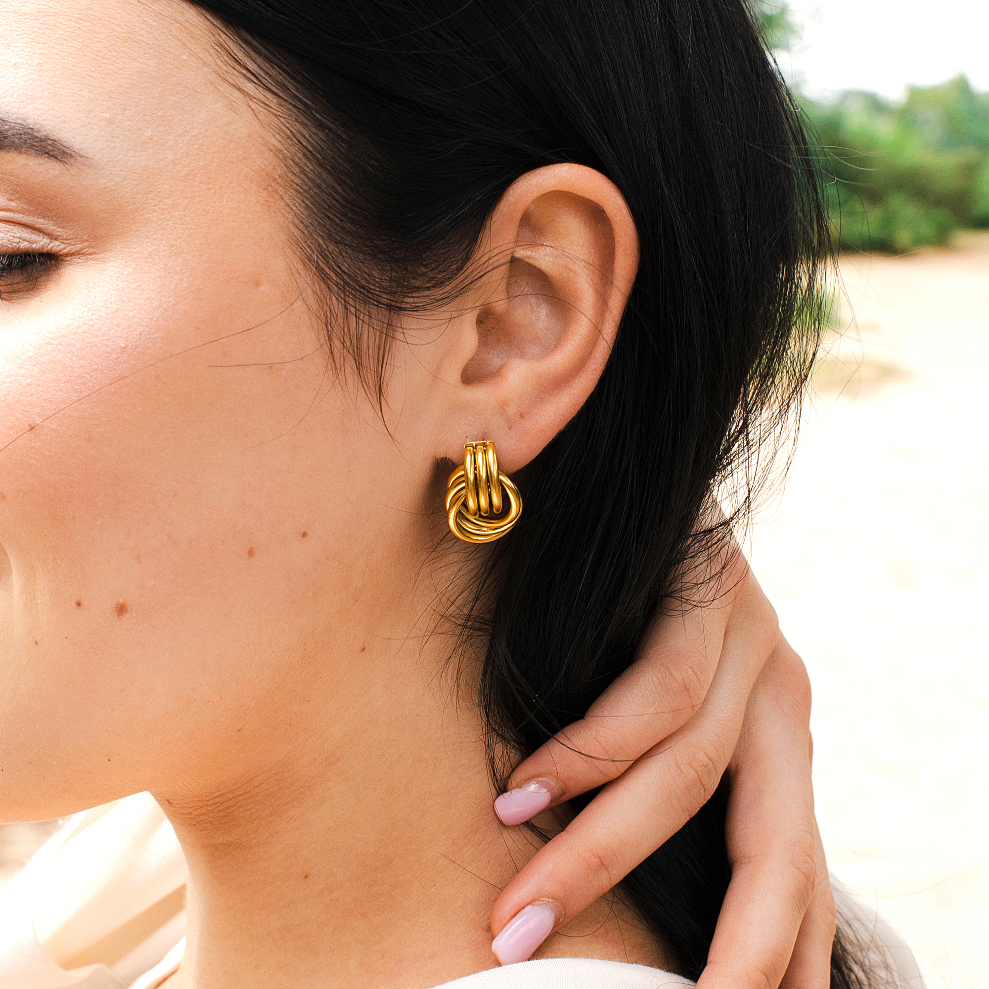 Productinformatie ""Luisa" Edelstahl Ohrstecker, goldfarben, verschlungene Ring-Form"