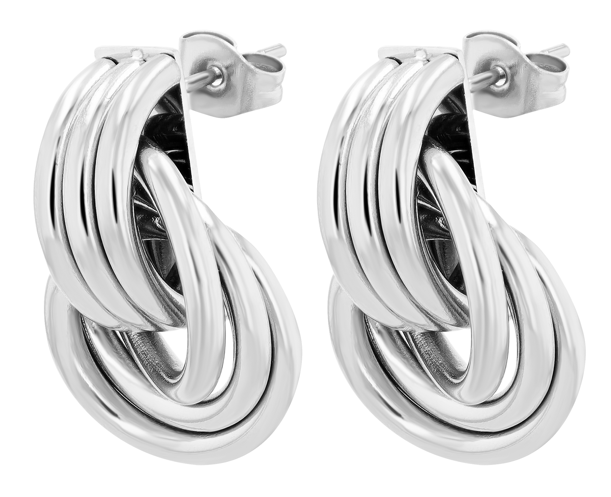 Productinformatie ""Luisa" Edelstahl Ohrstecker, silberfarben, verschlungene Ring-Form"