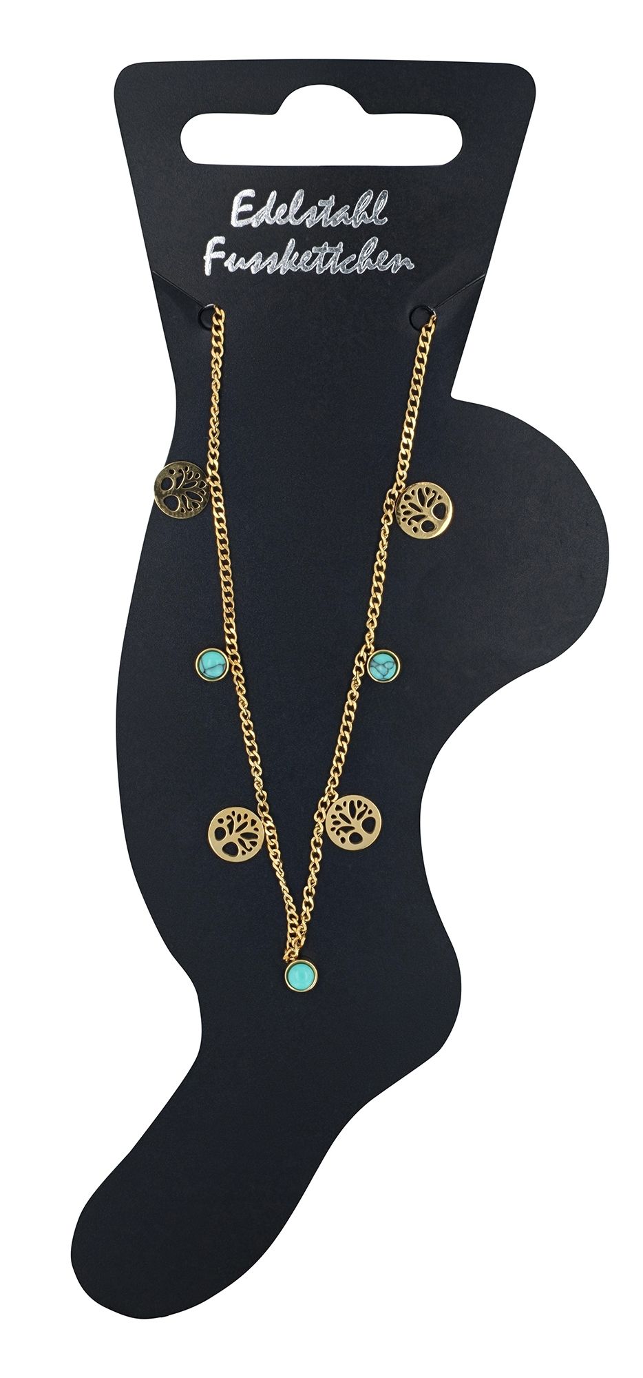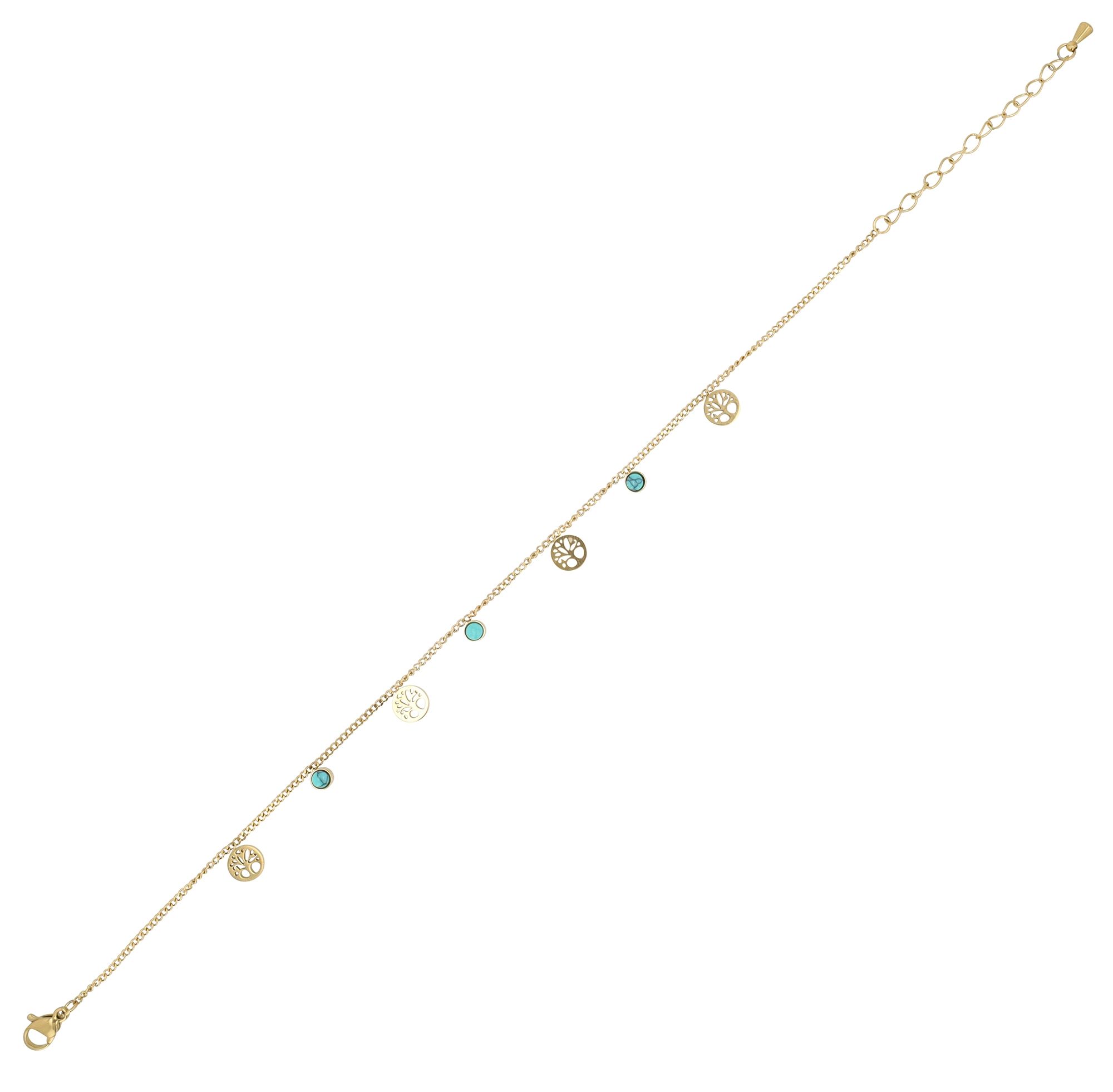 Productinformatie ""Lys" Edelstahl Fußkettchen (Lebensbaum), 21,5 + 5 cm, goldfarben"