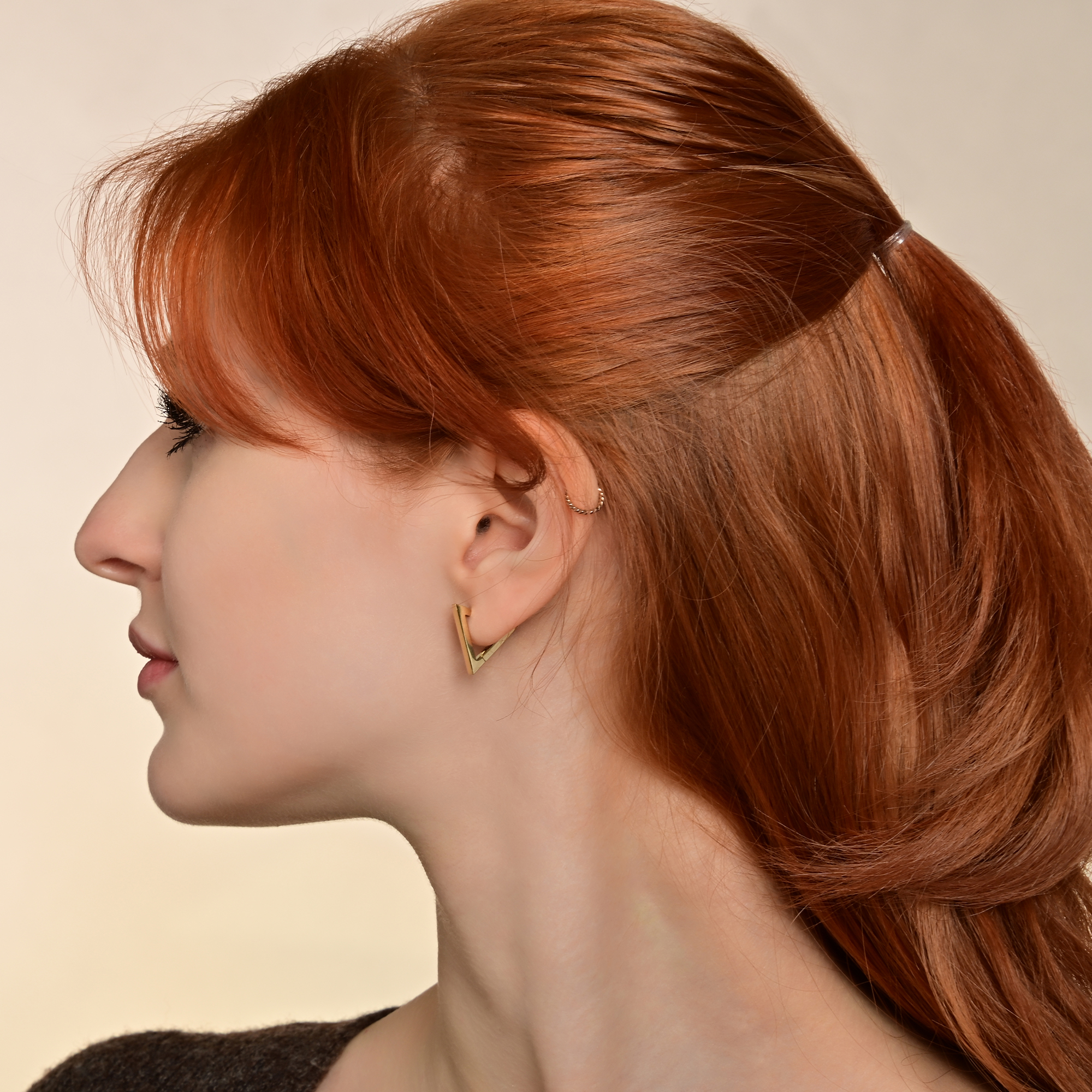 Deze buitengewone hoepeloorbellen maken indruk met hun moderne, driehoekige vorm en eenvoudige maar stijlvolle esthetiek. Met hun afmetingen van 15 mm x 3 mm vormen ze een subtiele maar opvallende aanvulling op elke outfit. De hoogwaardige goudkleurige plating geeft de oorbellen een verfijnde glans, terwijl de praktische vouwsluiting zorgt voor een comfortabele pasvorm en veilig gebruik. Perfect voor dagelijks gebruik of voor speciale gelegenheden - een stijlvol accessoire voor elke sieradenliefhebber.