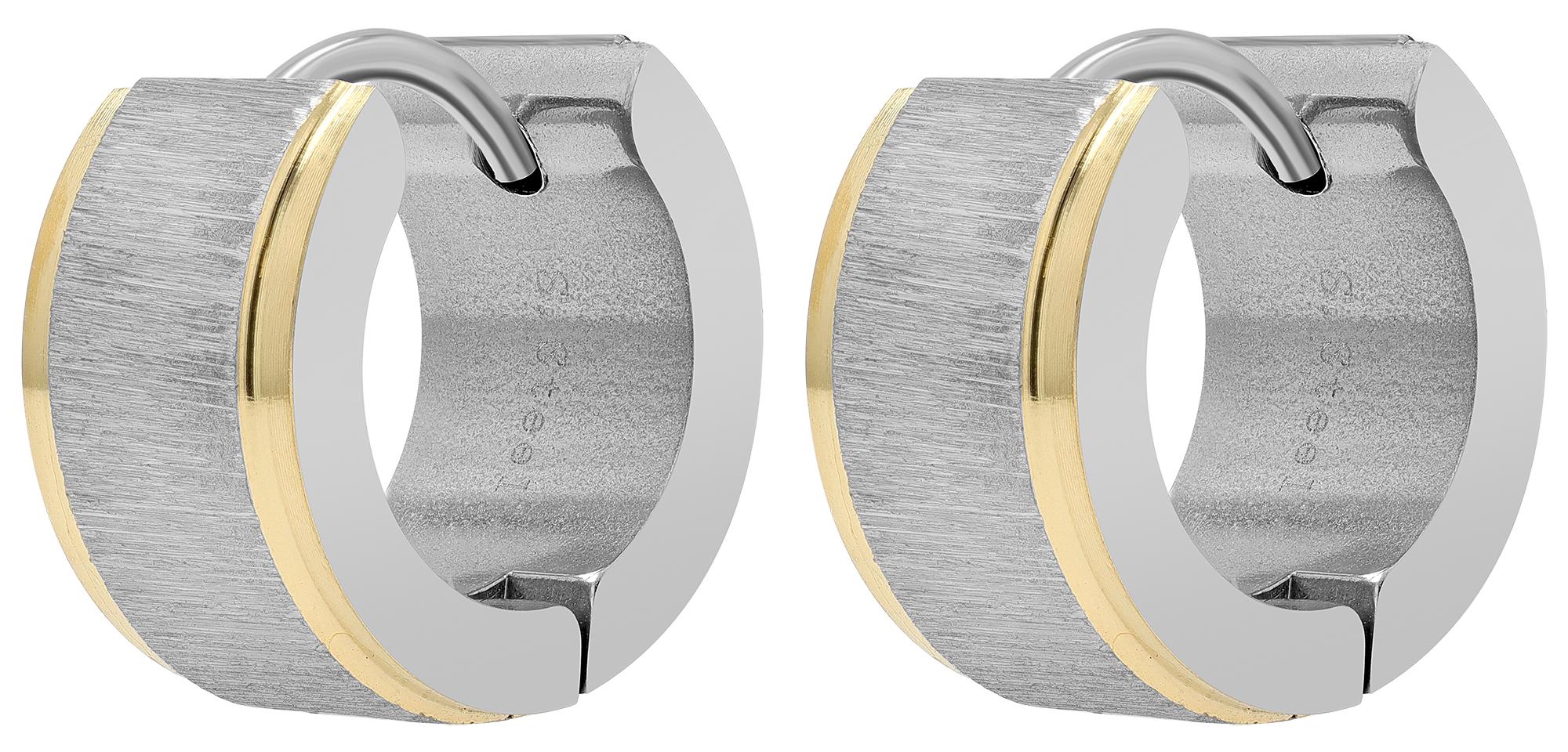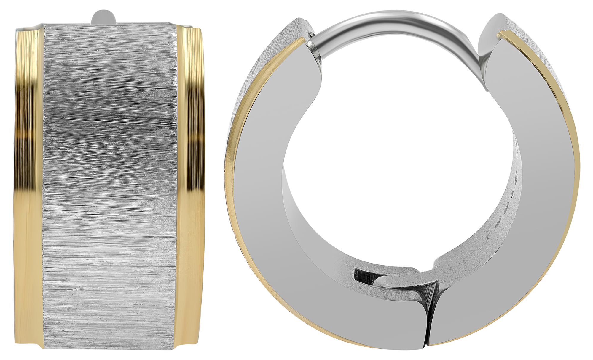 Productinformatie ""Maiva" roestvrijstalen oorbellen met scharnier, geborsteld, Ø 9 mm, tweekleurig"