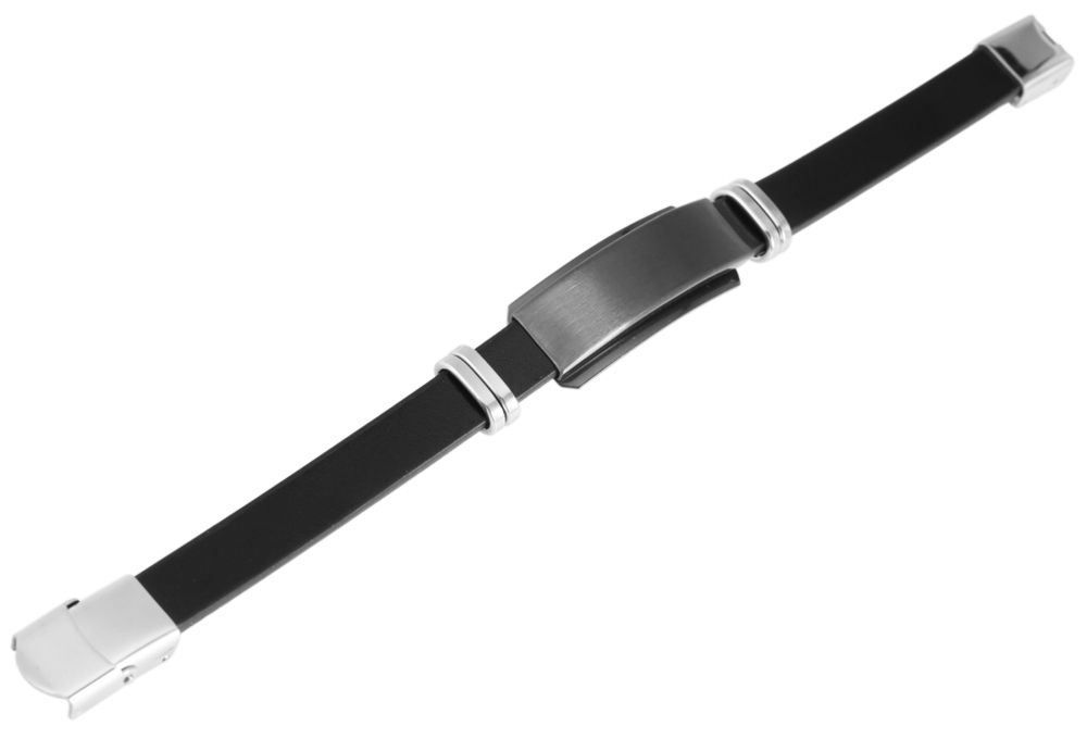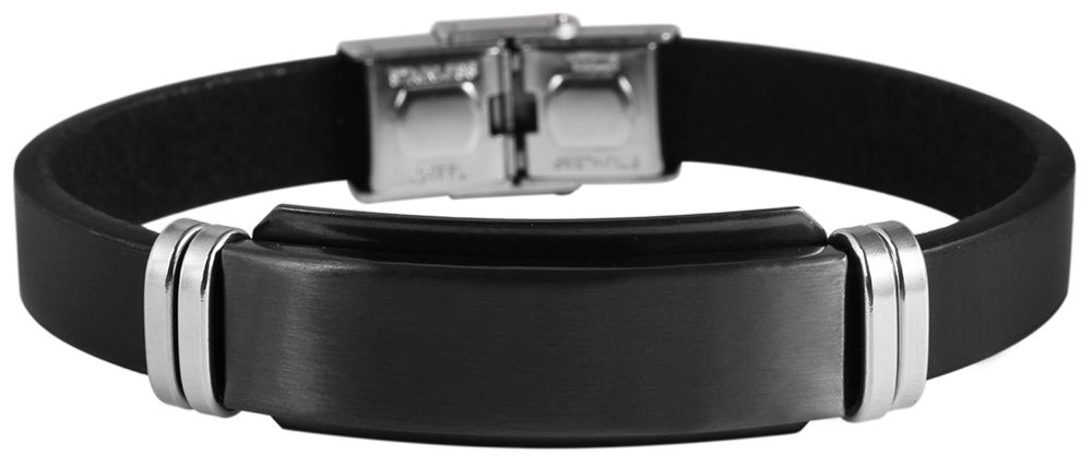 Das Echtlederarmband der Marke Akzent ist aus einem schlichten Lederriemen gefertigt, der mittig mit einer Gravurplatte aus Edelstahl und weiteren Edelstahlelementen verziert ist. Die Identplatte eignet sich hervorragend für Gravuren aller Art. Die Maße des Lederarmbandes ergeben sich aus einer Gesamtlänge von 21 cm, einer Breite von 10 mm und einer Stärke von 3 mm.
