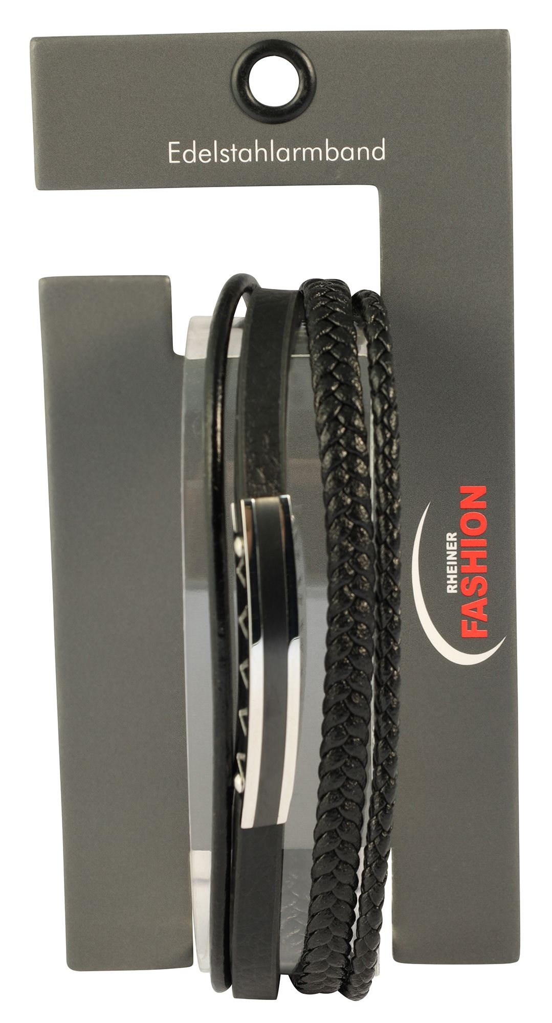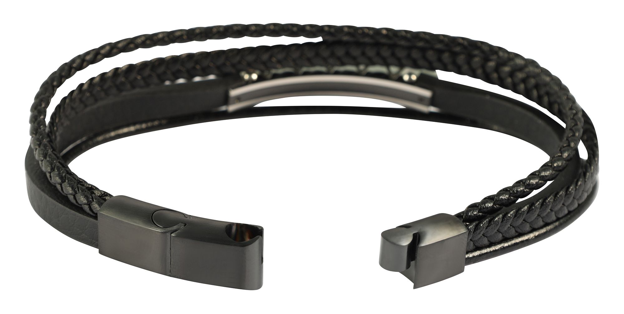 De armband maakt indruk met zijn vier verschillende strengen, soms gevlochten, gedraaid of glad, gemaakt van hoogwaardig imitatieleer. Het tweekleurige graveerplaatje met zijn matzwarte oppervlak en gepolijste zilverkleurige randen biedt voldoende ruimte voor een persoonlijke boodschap of initialen. De robuuste roestvrijstalen magneetsluiting in zwart zorgt voor een stevige grip en een mannelijke look. Een extra verlenging van 1 cm maakt flexibele aanpassing aan elke pols mogelijk. Perfect als cadeau voor speciale gelegenheden of als bijzondere highlight in je eigen sieradenlijn.