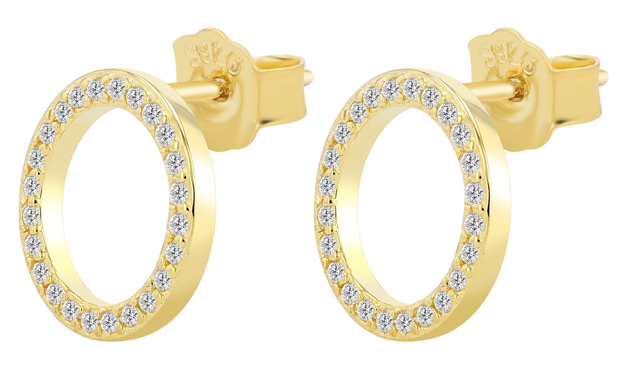 Productinformatie ""Maresa" - 925/- echt zilver, oorbellen, ronde open vorm Ø 11mm, goudkleurig met witte zirkonia"