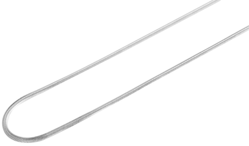 De zilverkleurige slangenketting van het merk Akzent is gemaakt van roestvrij staal in een slangenpatroon en is verkrijgbaar in lengtes van 40 cm, 45 cm en 50 cm. De materiaaldikte is 2 mm. Aan één uiteinde van de ketting is een verlenging van 5 cm bevestigd voor meer comfort en variabiliteit.