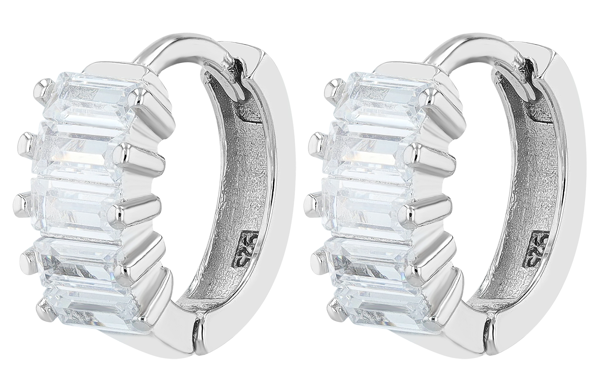 Aan de voorkant zijn 5 baguettegeslepen zirkonen (5 x 2 mm) verticaal gerangschikt. Deze fonkelende steentjes geven de creool een luxueus tintje en maken er een echte blikvanger van.