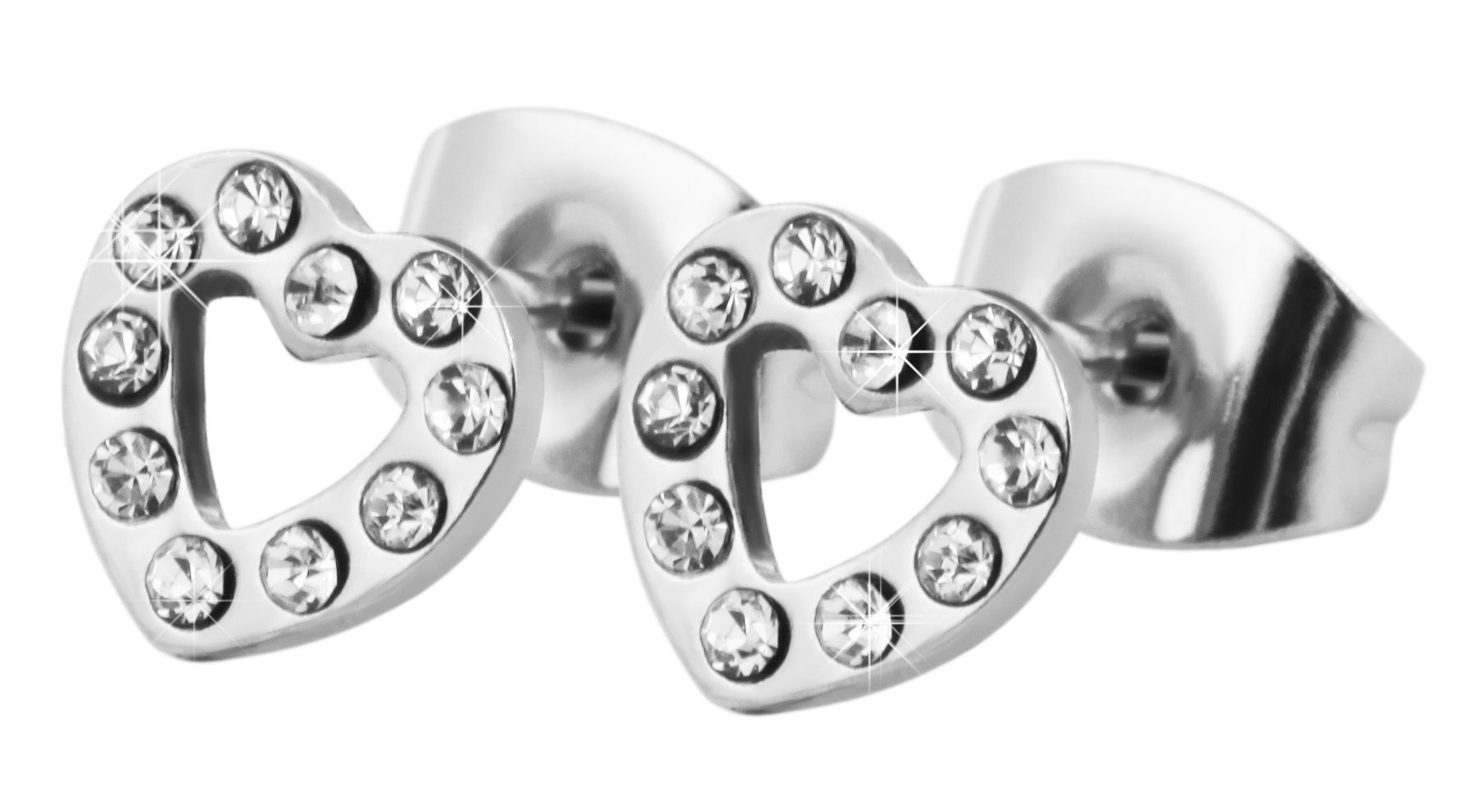 De hartvormige damesoorbellen van het merk Akzent zijn gemaakt van roestvrij staal en zijn zilverkleurig. Deze oorbellen zijn een echte blikvanger dankzij het oppervlak dat versierd is met similli steentjes. De oorbellen zijn 6 mm lang, 6,5 mm breed en 2 mm dik. De oorsieraden kunnen stevig aan het oor worden bevestigd met een vleugelschroef. Het is ook mogelijk om de meegeleverde comfort-oormoer met siliconen plaatje te gebruiken.