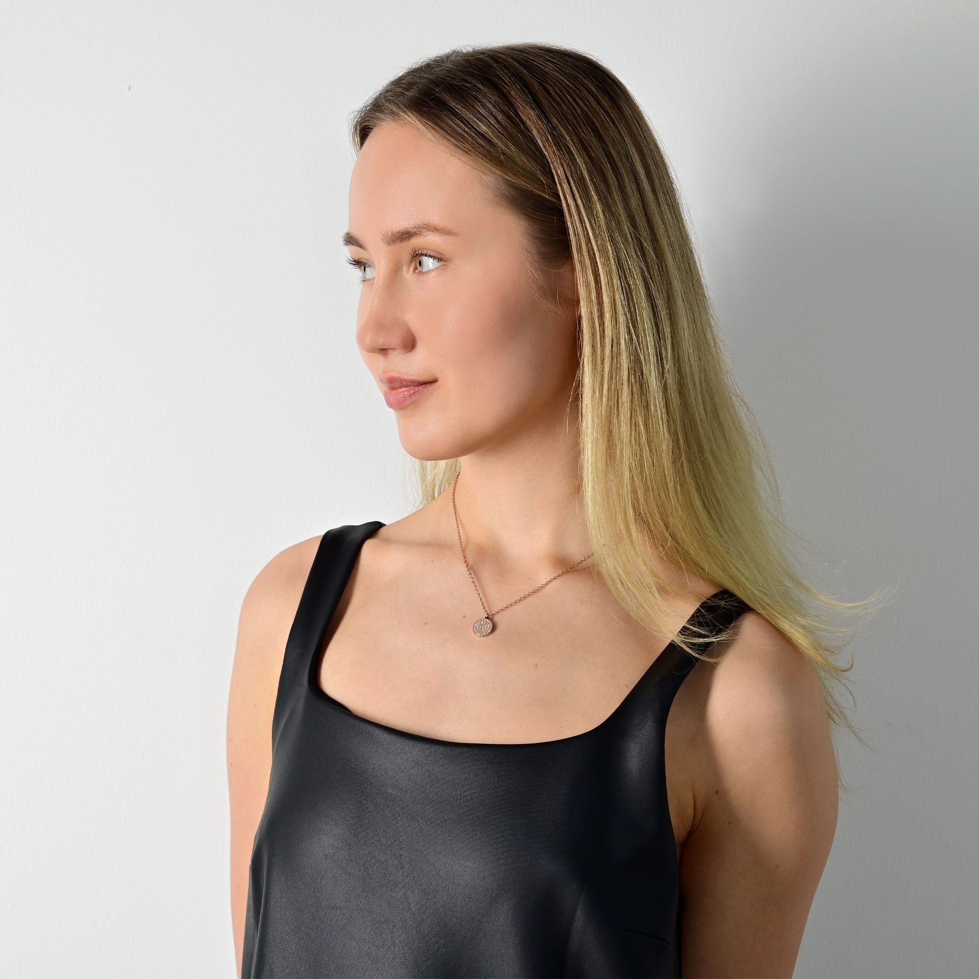 De roségoudkleurige damesketting van het merk Akzent is gemaakt van roestvrij staal en heeft een ankerpatroon. De ronde hanger versierd met similli stenen zorgt ervoor dat dit sieraad een echte blikvanger is. De ketting heeft een lengte van 43 cm, een breedte van 2 mm en een dikte van 1 mm. De hanger heeft een diameter van 12 mm en is 2 mm dik. De ketting kan worden geopend en gesloten met een karabijnsluiting, die ook van roestvrij staal is. Zowel de ketting als de hanger zijn hoogglans gepolijst en voorzien van een IPG-coating en de achterkant van de hanger kan worden gepersonaliseerd met kleine gravures.