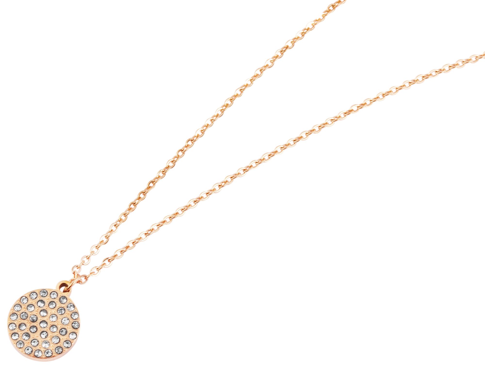 Productinformatie ""Mathilda", roestvrij stalen collier met hanger, 43 cm, simili-stenen, roségoudkleurig"