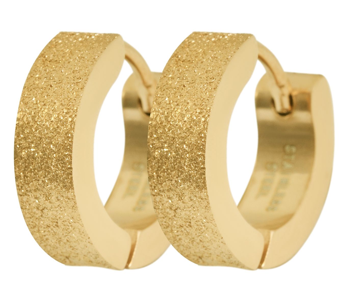 Productinformatie ""Matty" accent oorbellen van roestvrij staal met scharnier, gezandstraald, goudkleurig"