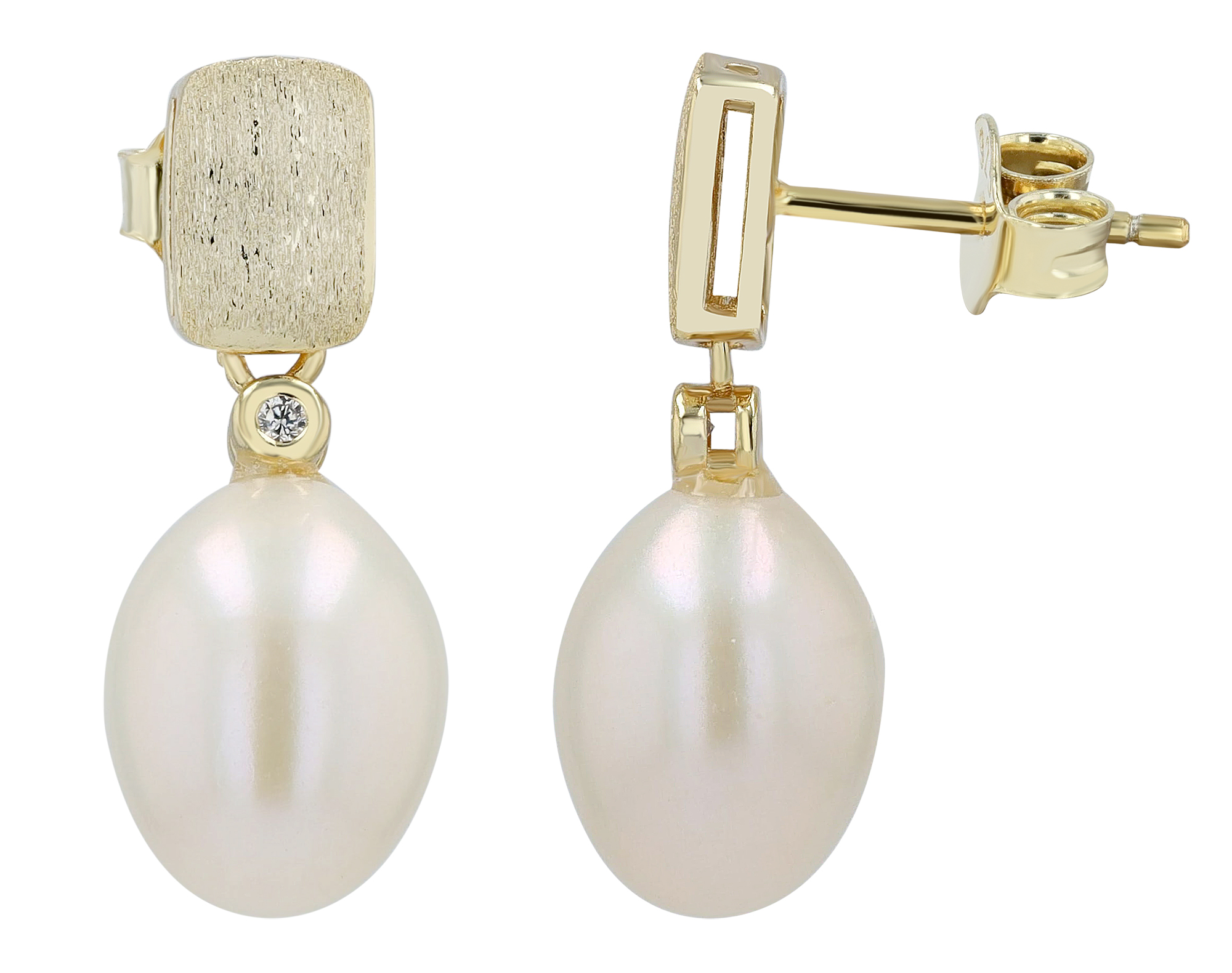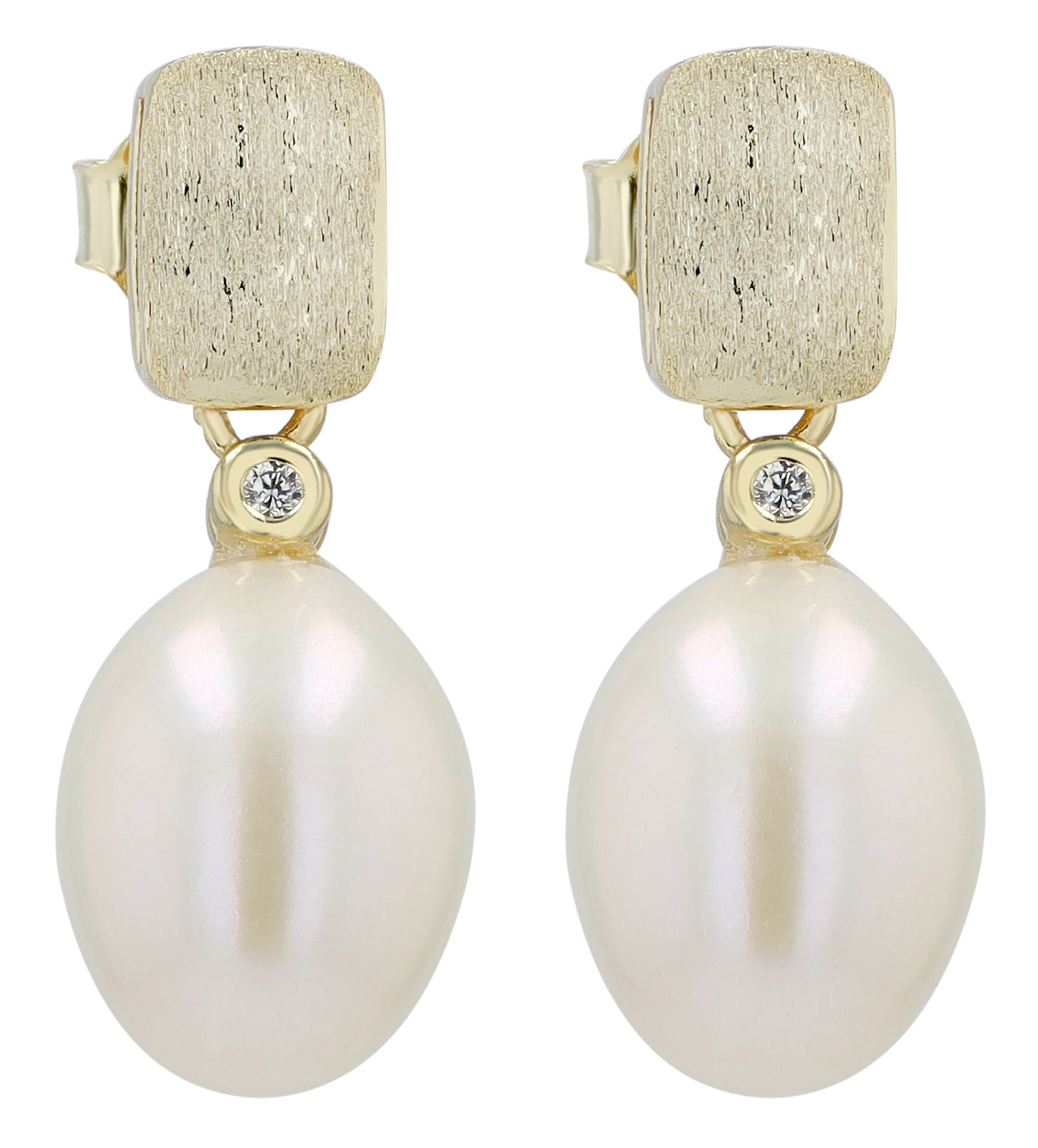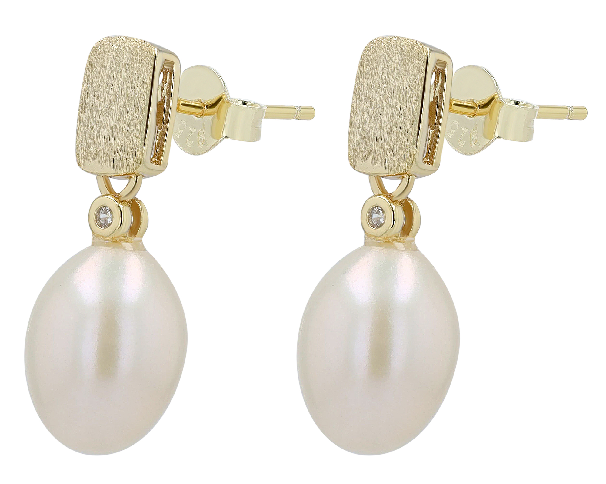 Productinformatie ""Mella" 925/- Echt Silber Ohrstecker rhodiniert Süßwasserperle/Zirkonia"