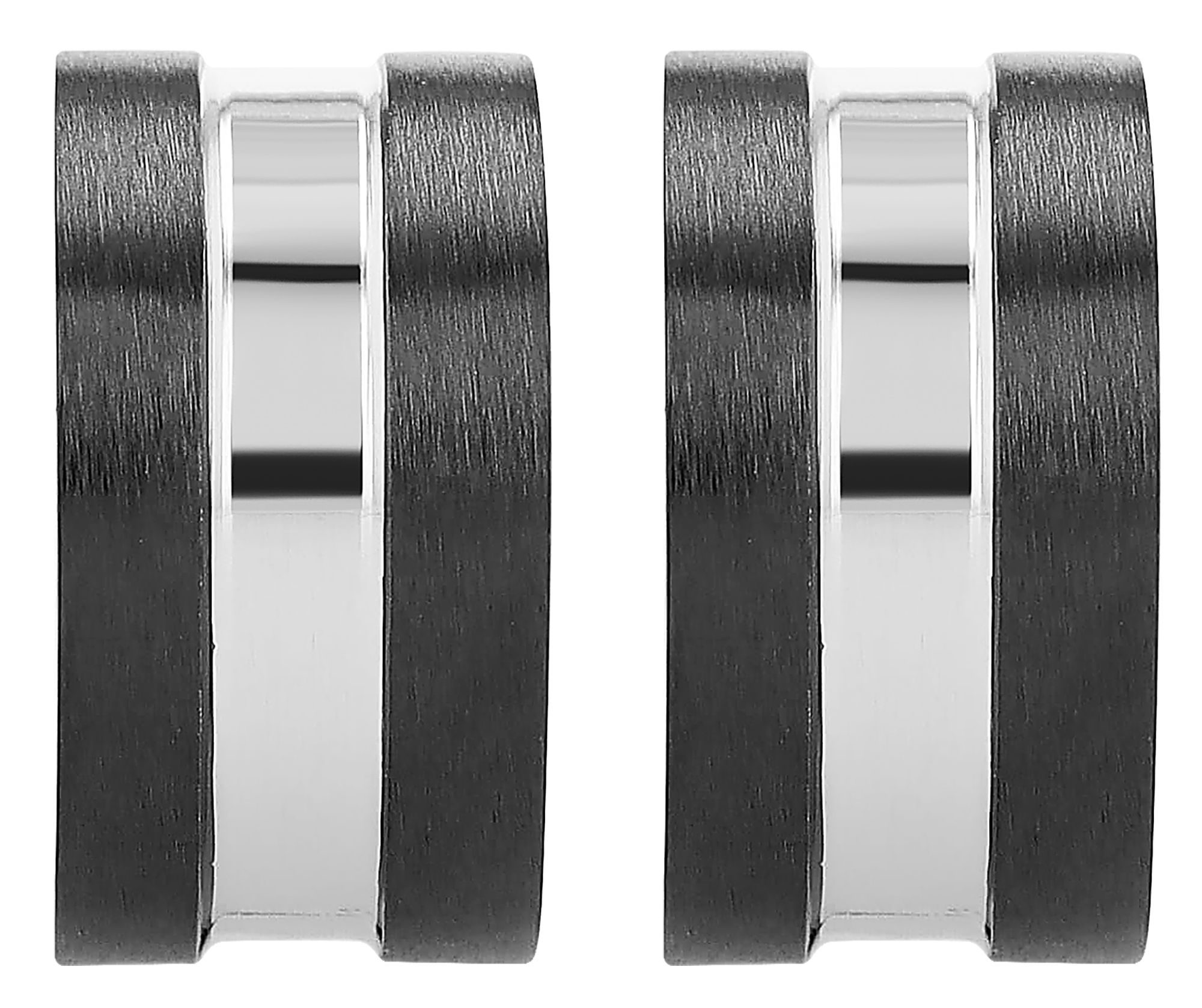 Ga voor een accessoire met karakter. Deze unisex hoepeloorbellen maken indruk met hun contrastrijke ontwerp en moderne designtaal. Dit model is gemaakt van hoogwaardig roestvrij staal en combineert matte elegantie met glanzende accenten voor een perfecte match.