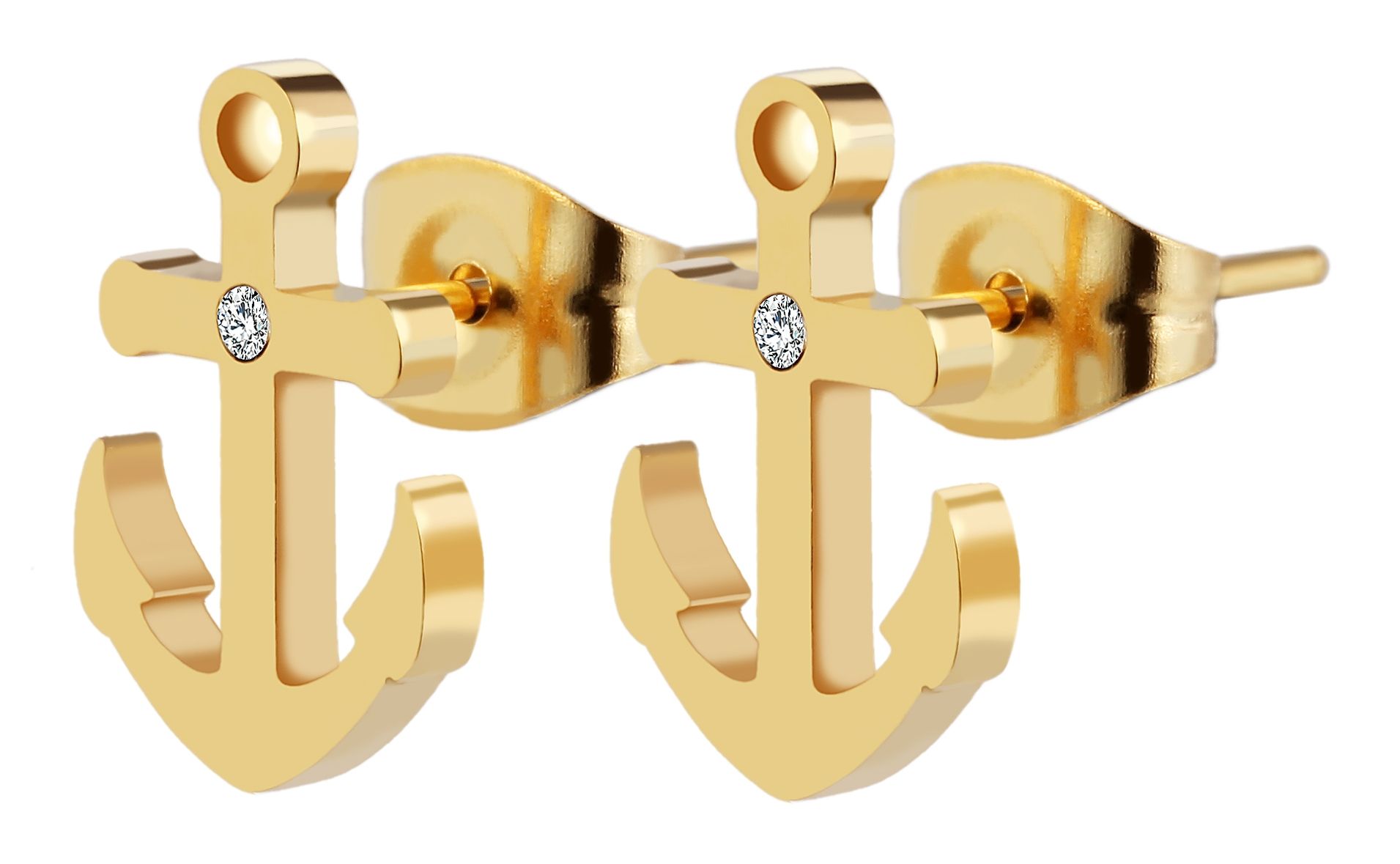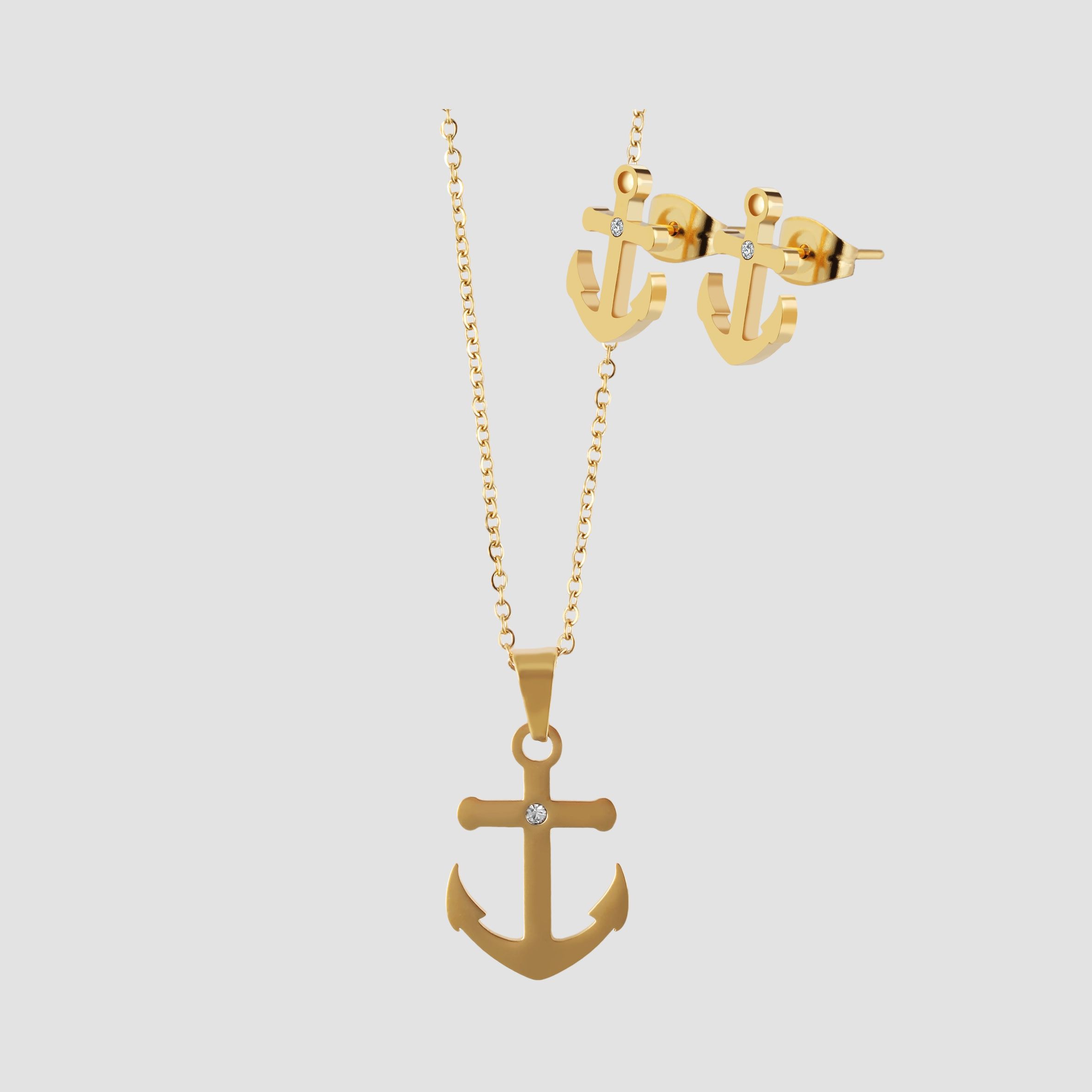 Productinformatie ""Miera", accent sieradenset van roestvrij staal met oorstekers en hanger in ankerdesign, goudkleurig"