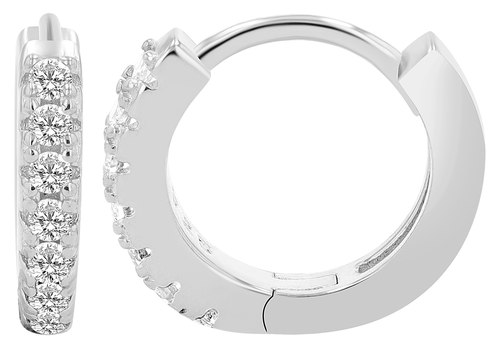 Productinformatie ""Mila", 925/- Echt Silber, Mini Creolen/ Huggies, Ø 9 mm, rhodiniert/ weißer Zirkoniabesatz"