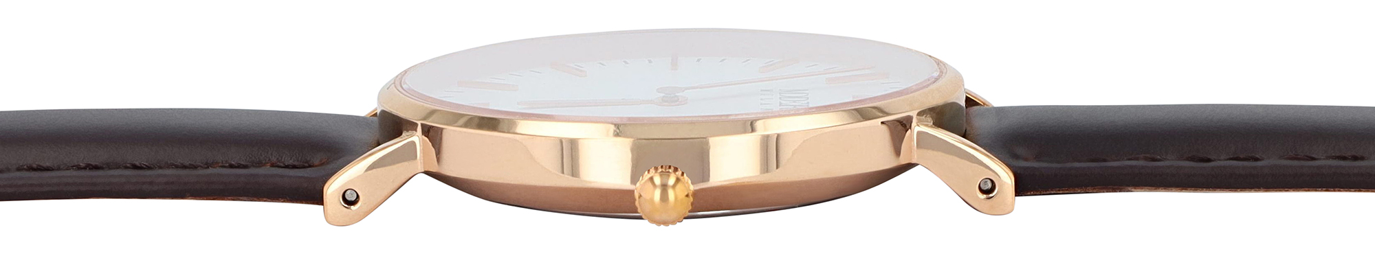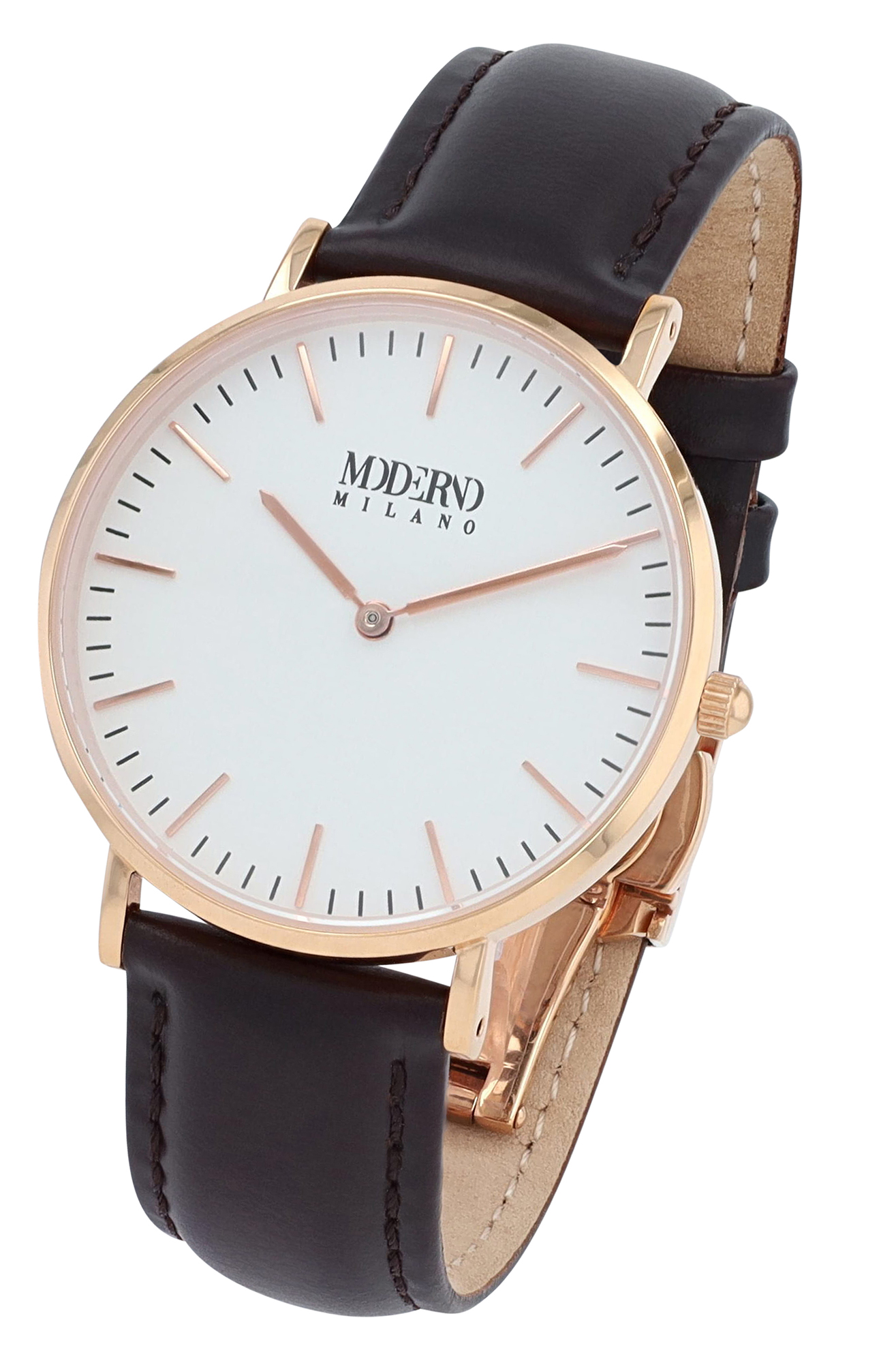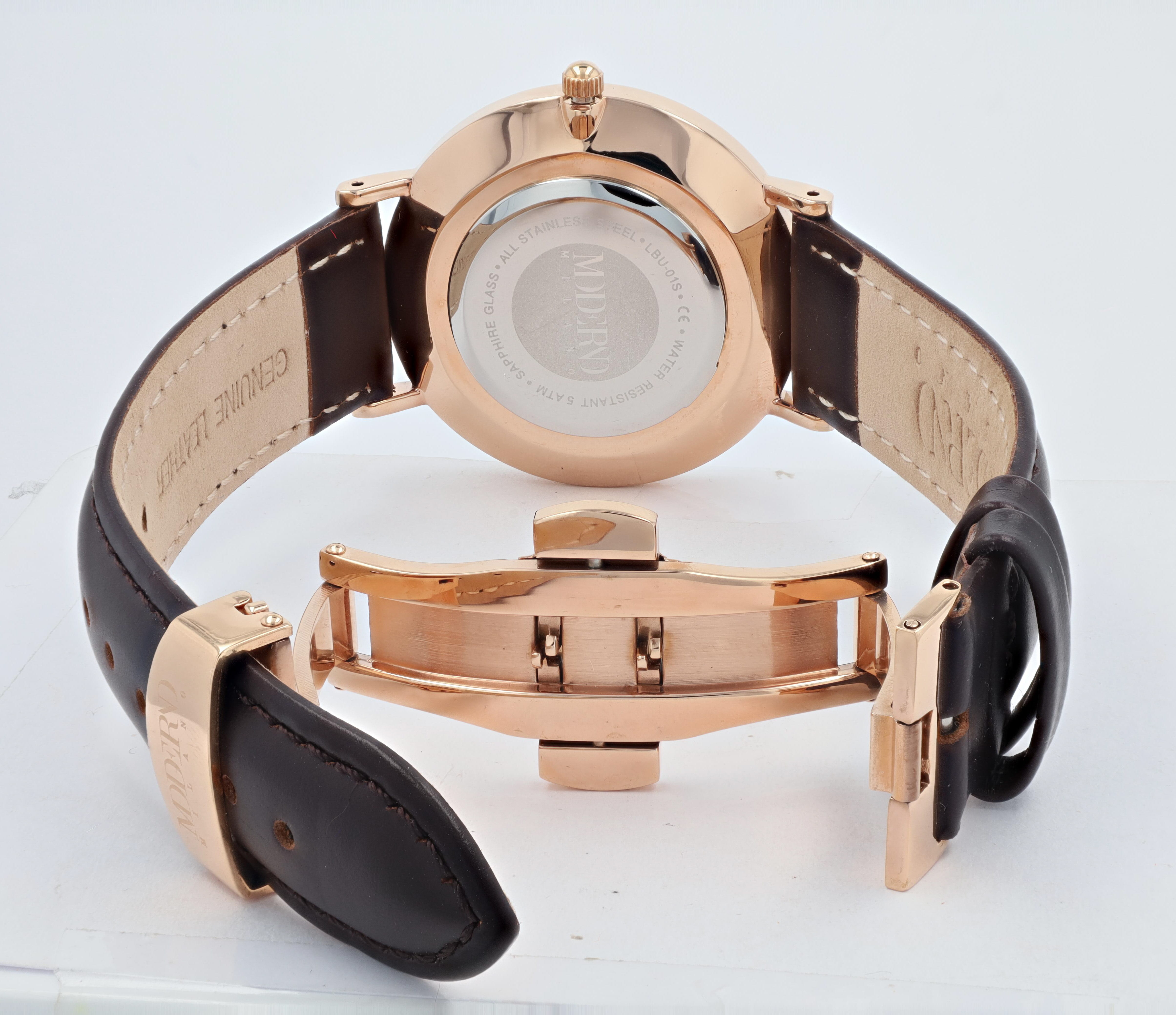 Productinformatie "Moderno Milano Edelstahl Damenuhr Ø 36,5 mm, Echtlederband, Saphirglas, dunkelbraun/ rosegoldfarben"