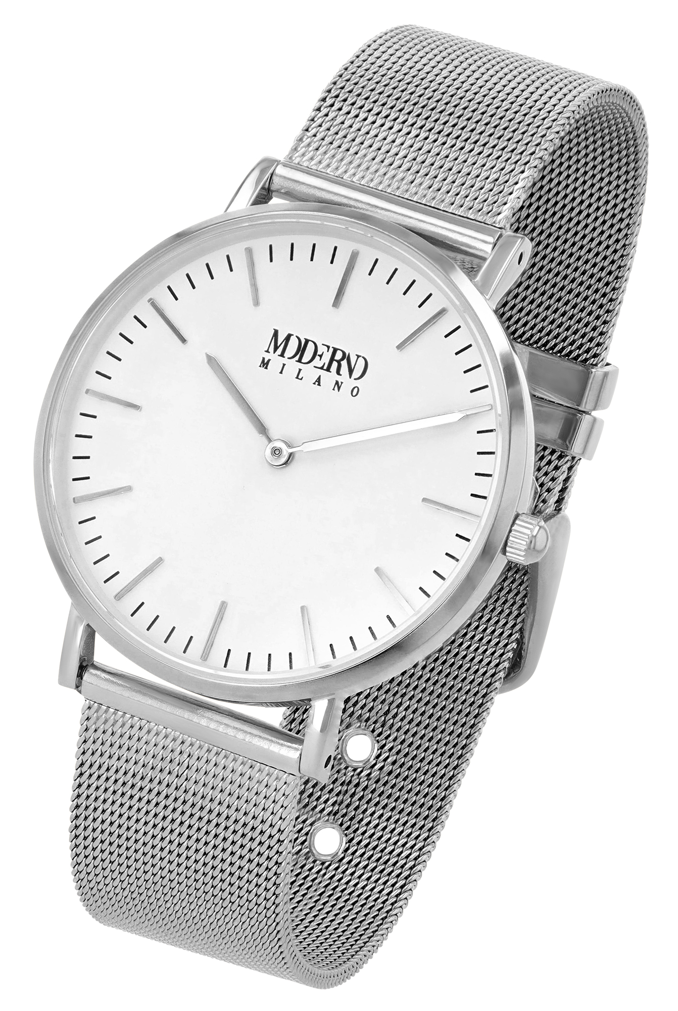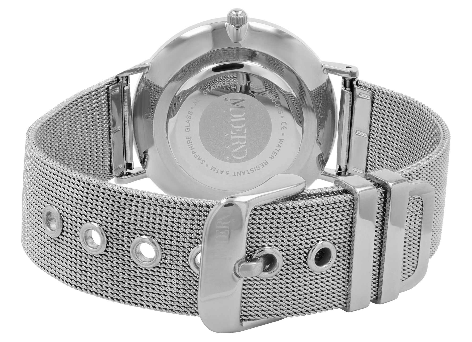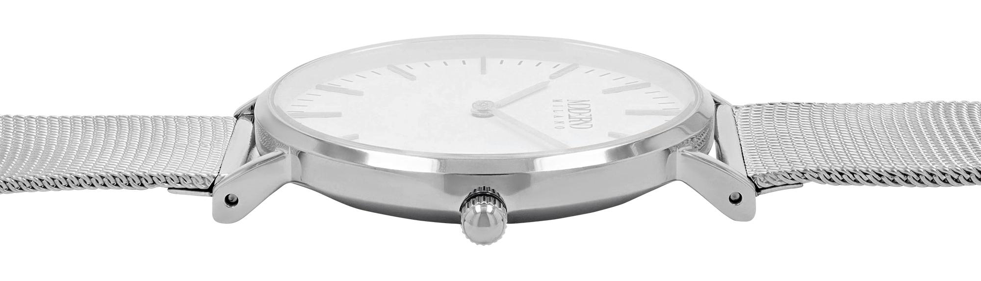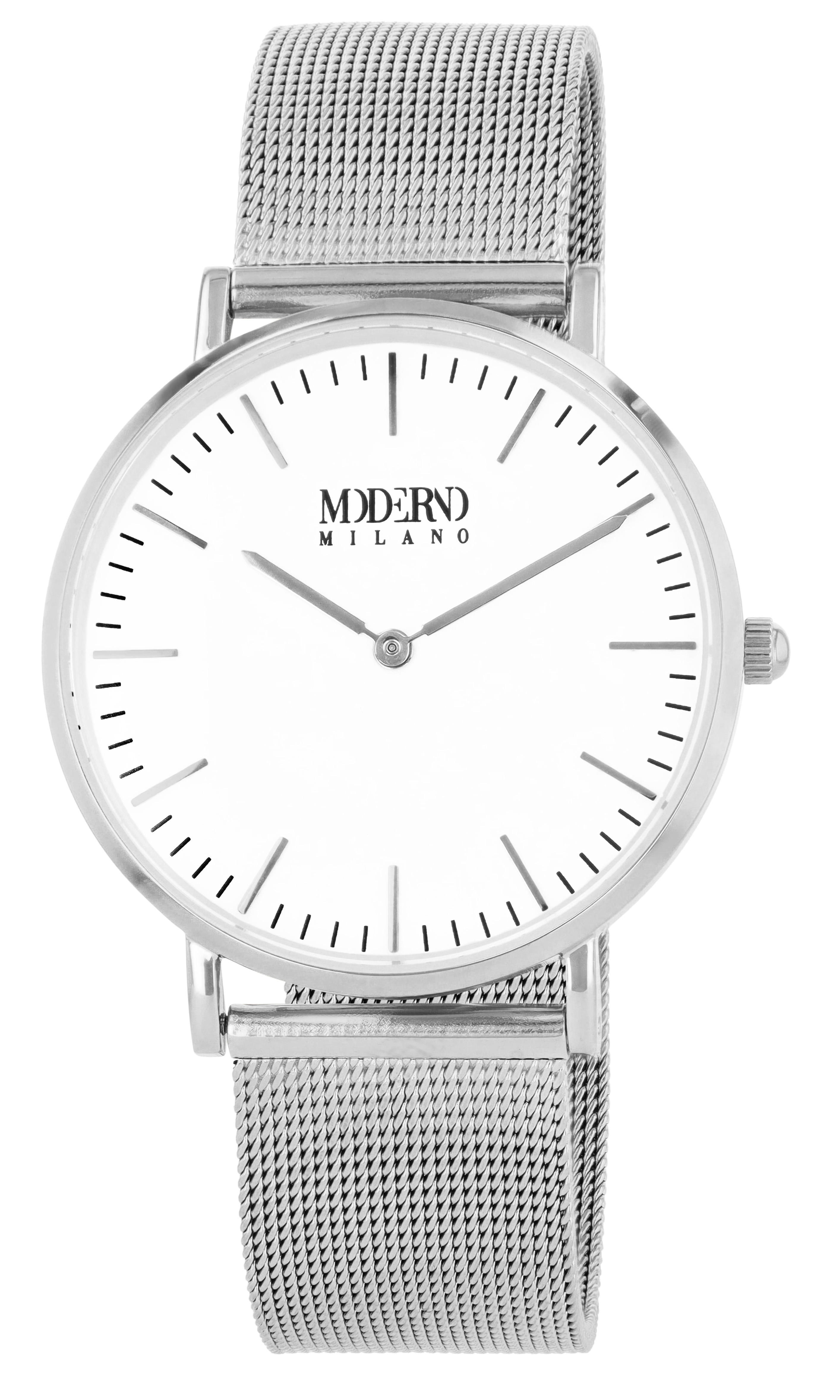 Productinformatie "Moderno Milano Edelstahl Damenuhr Ø 36,5 mm, Meshband, Saphirglas, silberfarben"