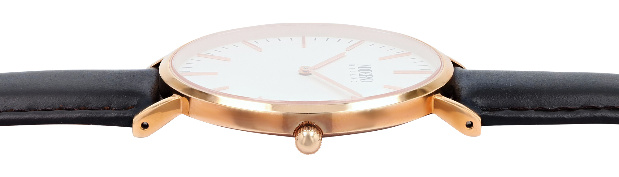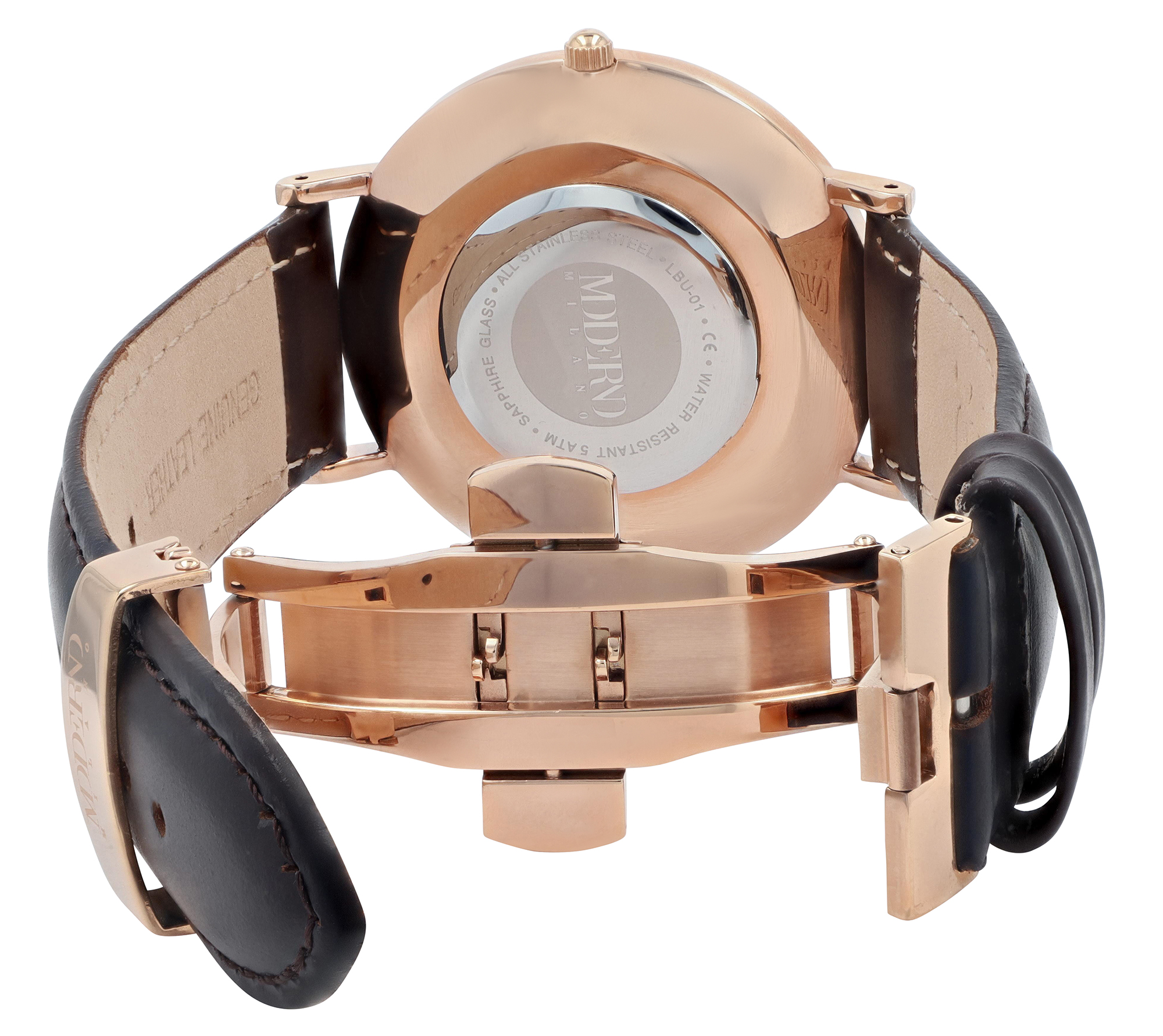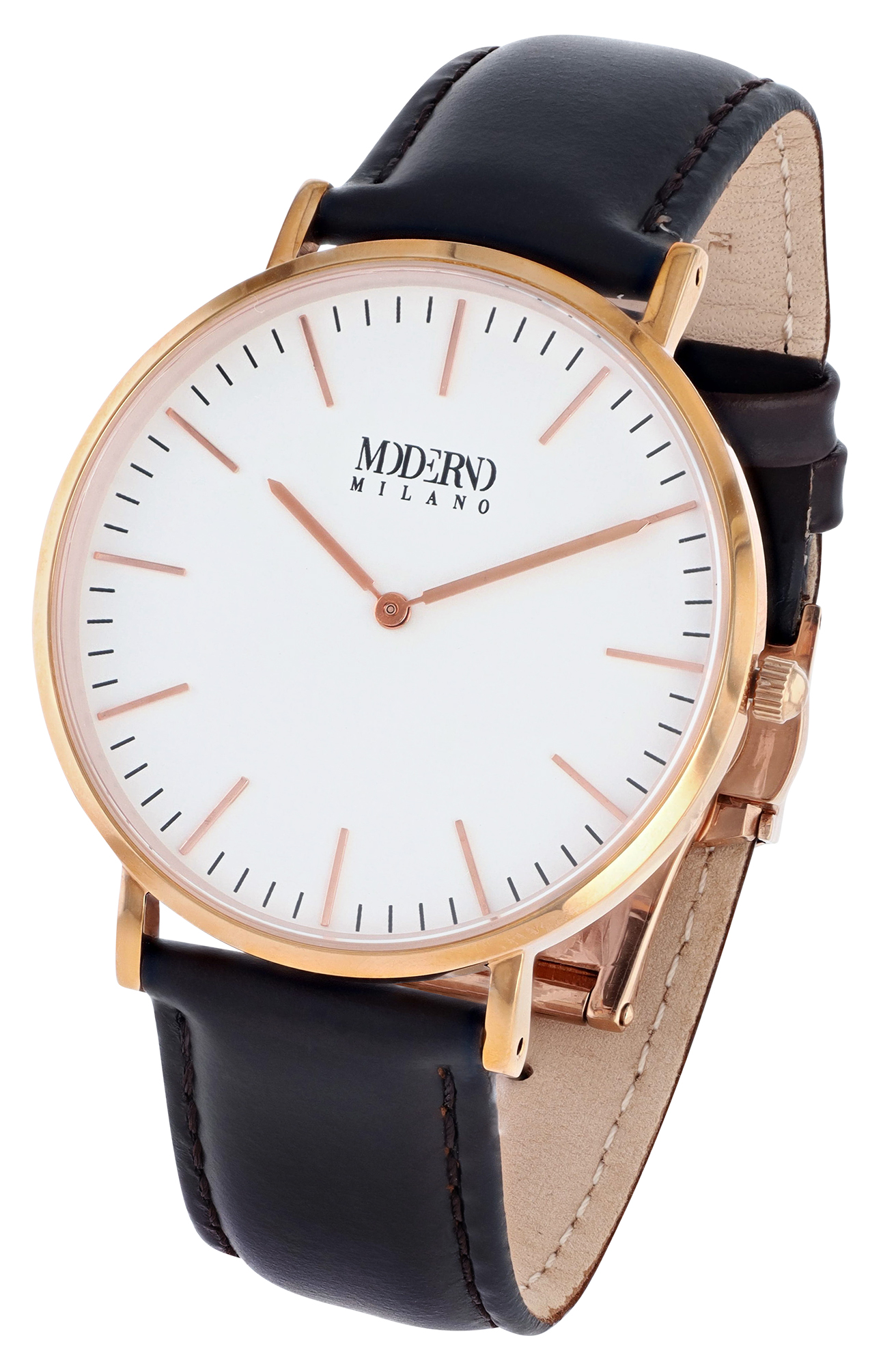 Productinformatie "Moderno Milano Edelstahl Herrennuhr Ø 41 mm, Echtlederband, Saphirglas, dunkelbraun/ rosegoldfarben"