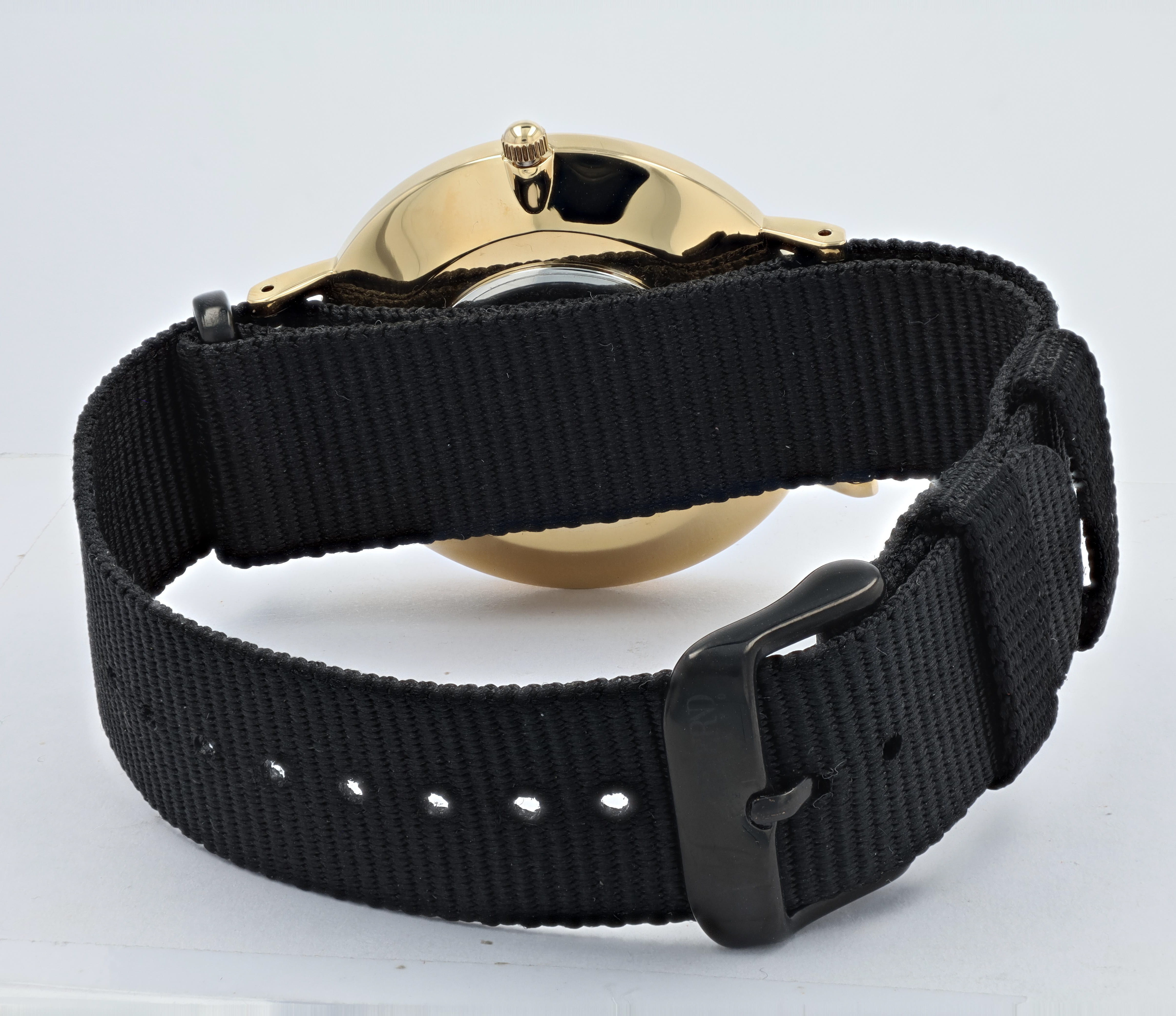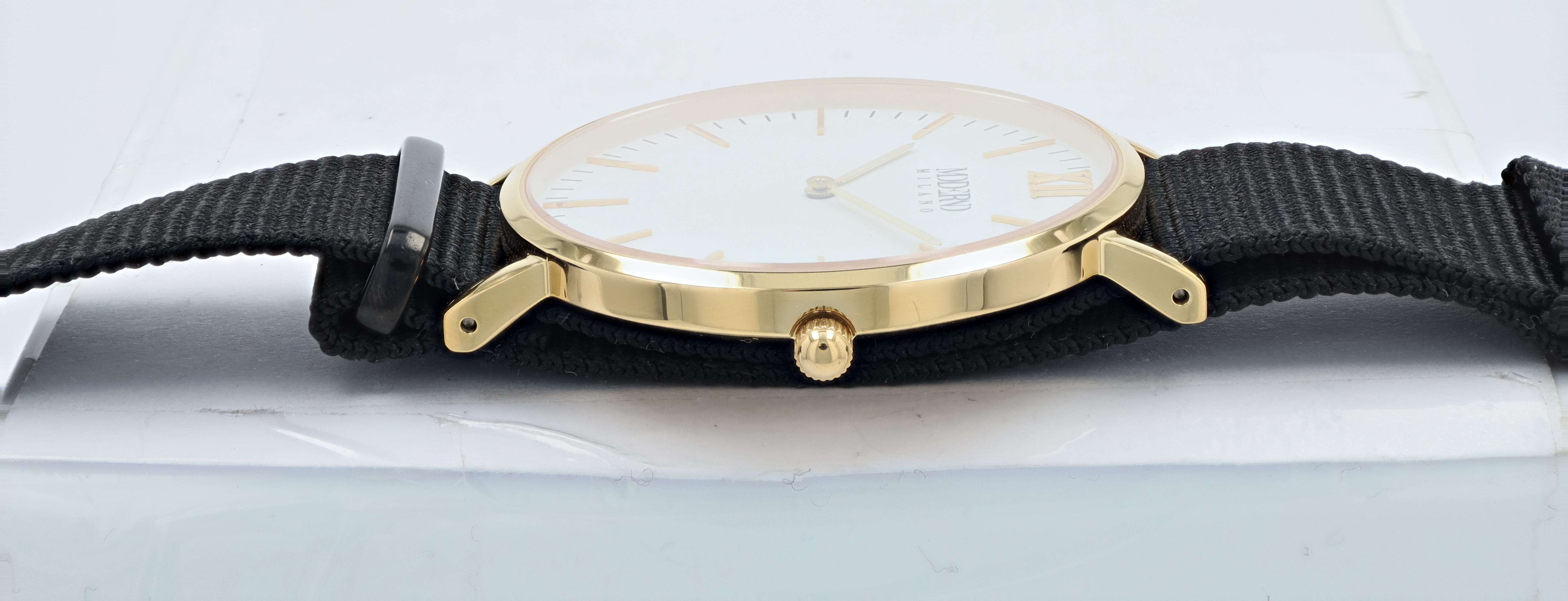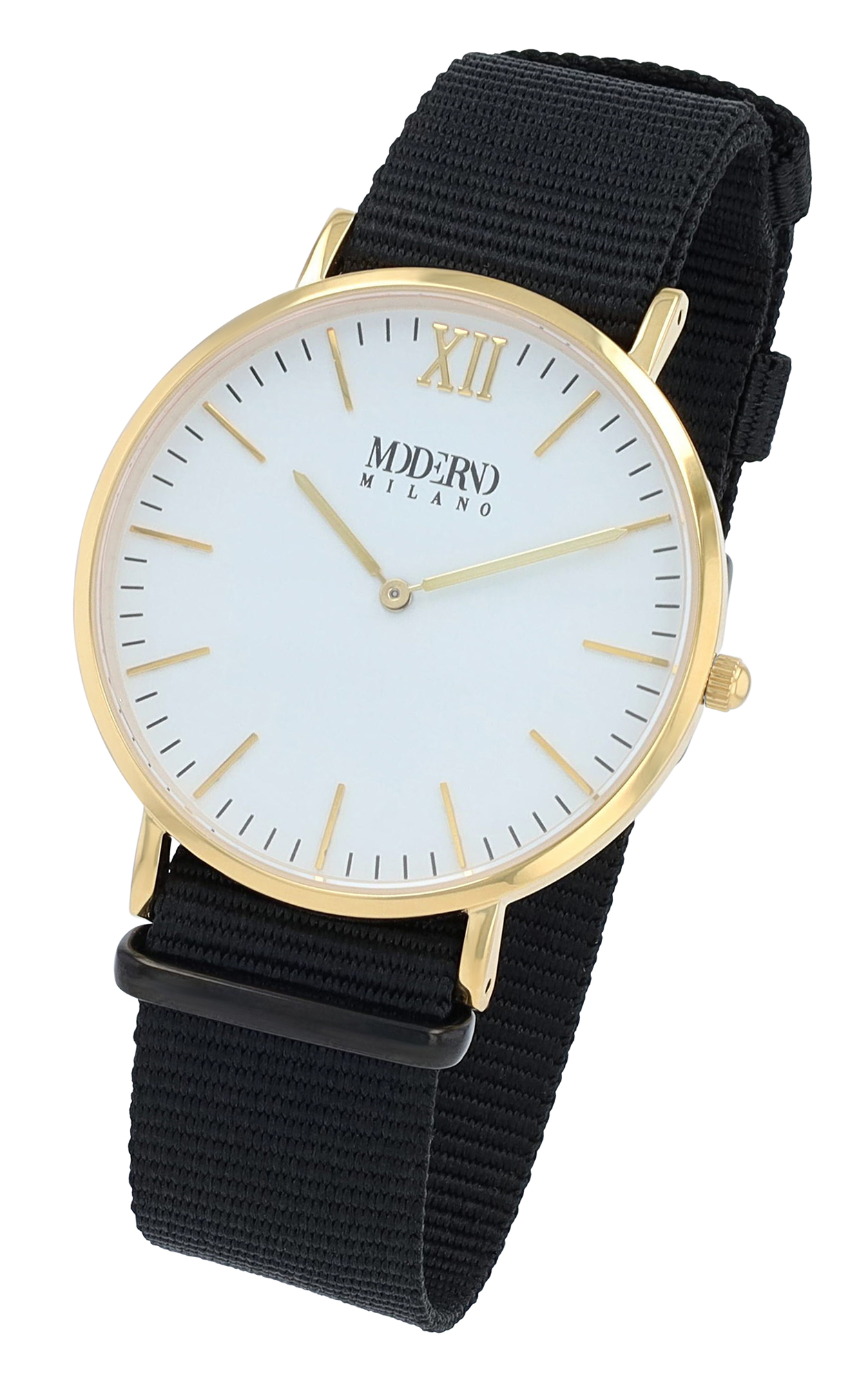 Productinformatie "Moderno Milano Edelstahl Herrenuhr 41 mm, Saphirglas & Nylon-NATO-Band (schwarz), goldfarben"