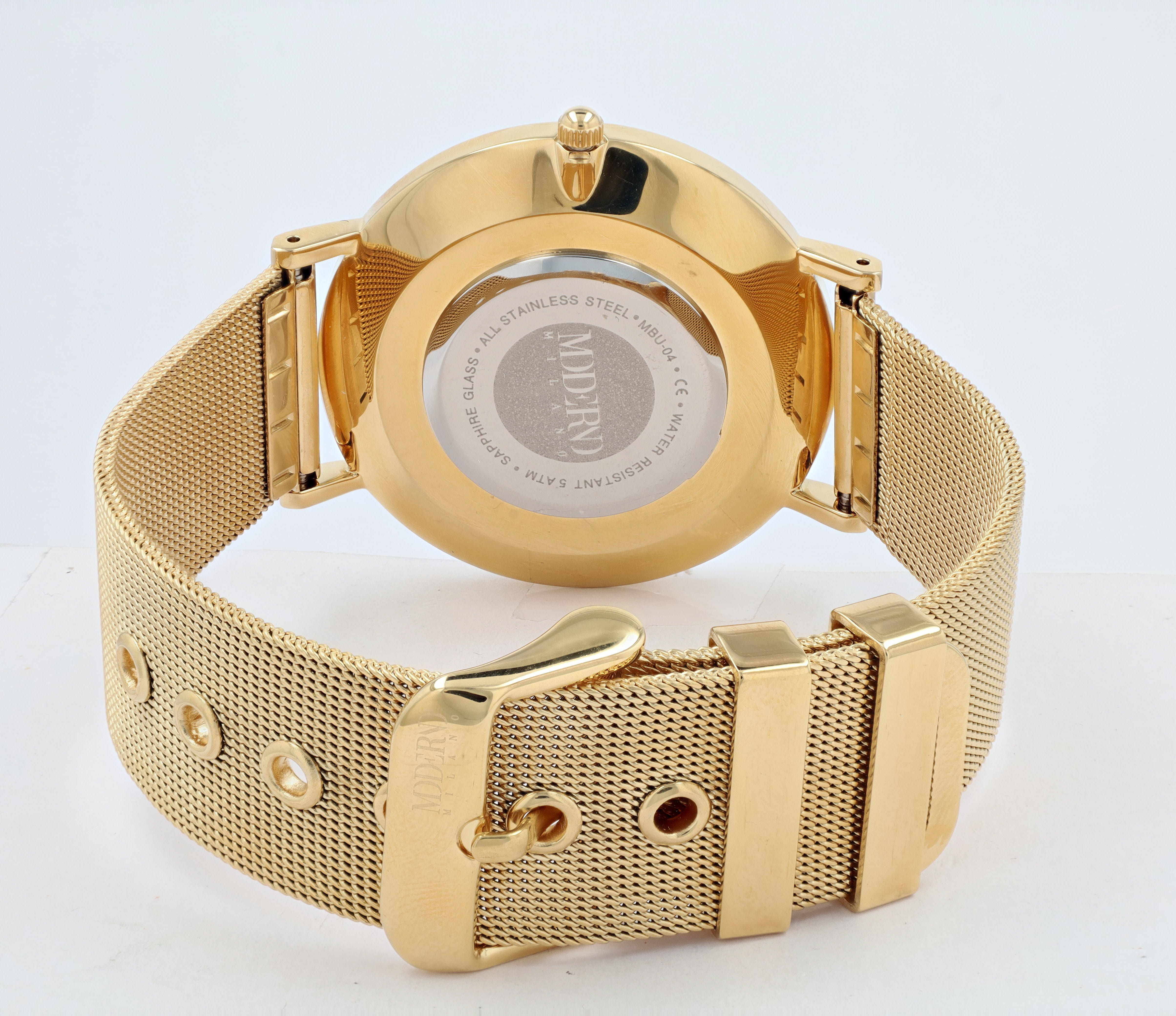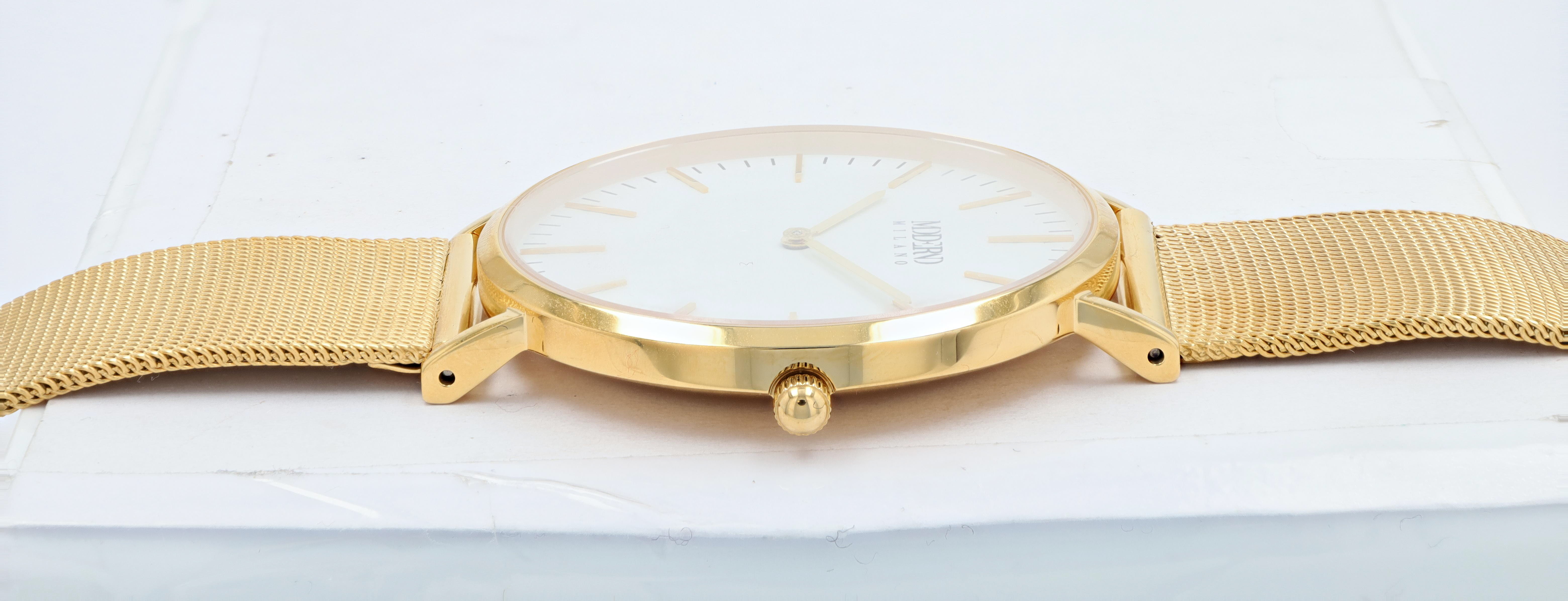 Productinformatie "Moderno Milano Edelstahl Herrenuhr Ø 41 mm, Meshband, Saphirglas, goldfarben"