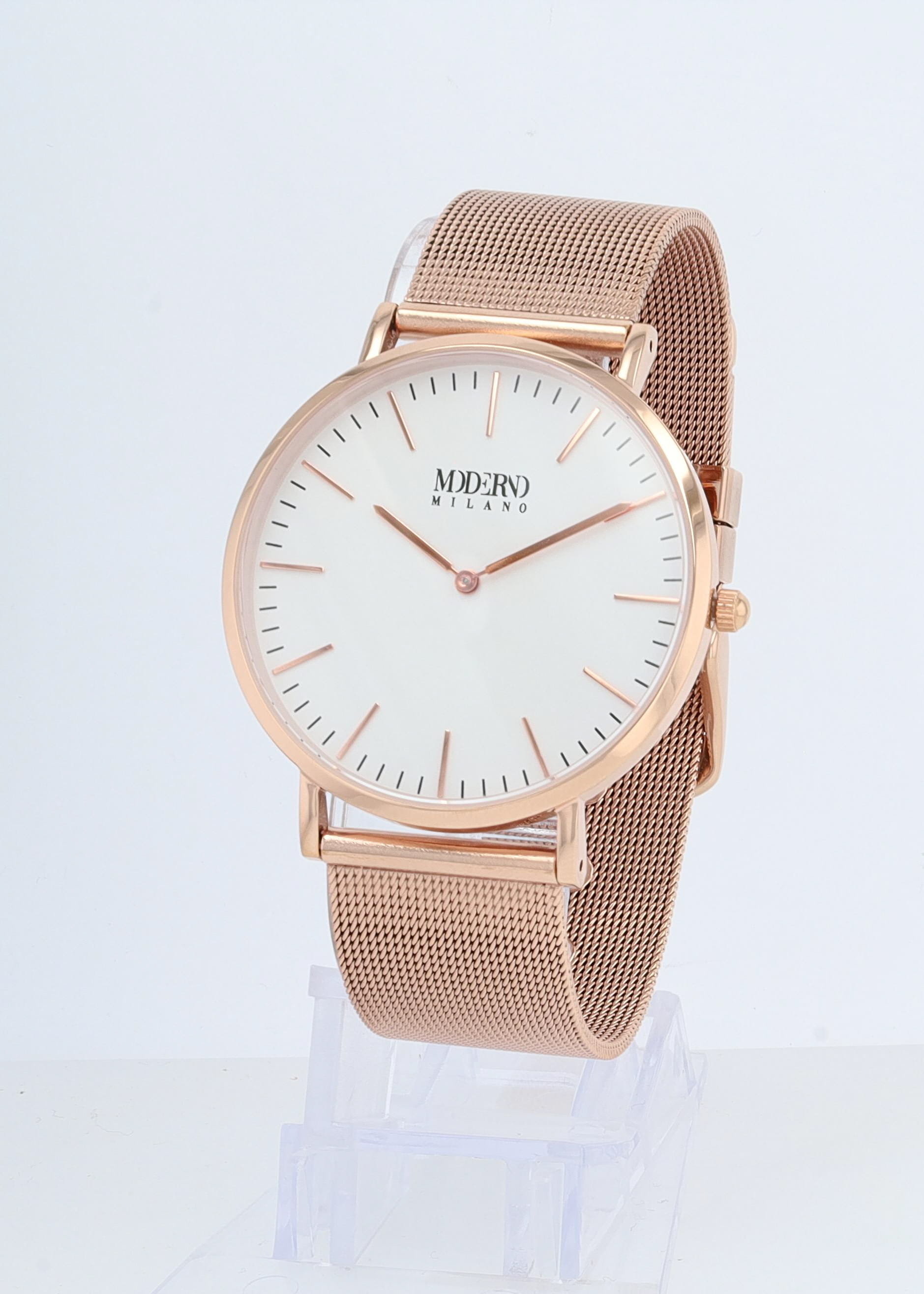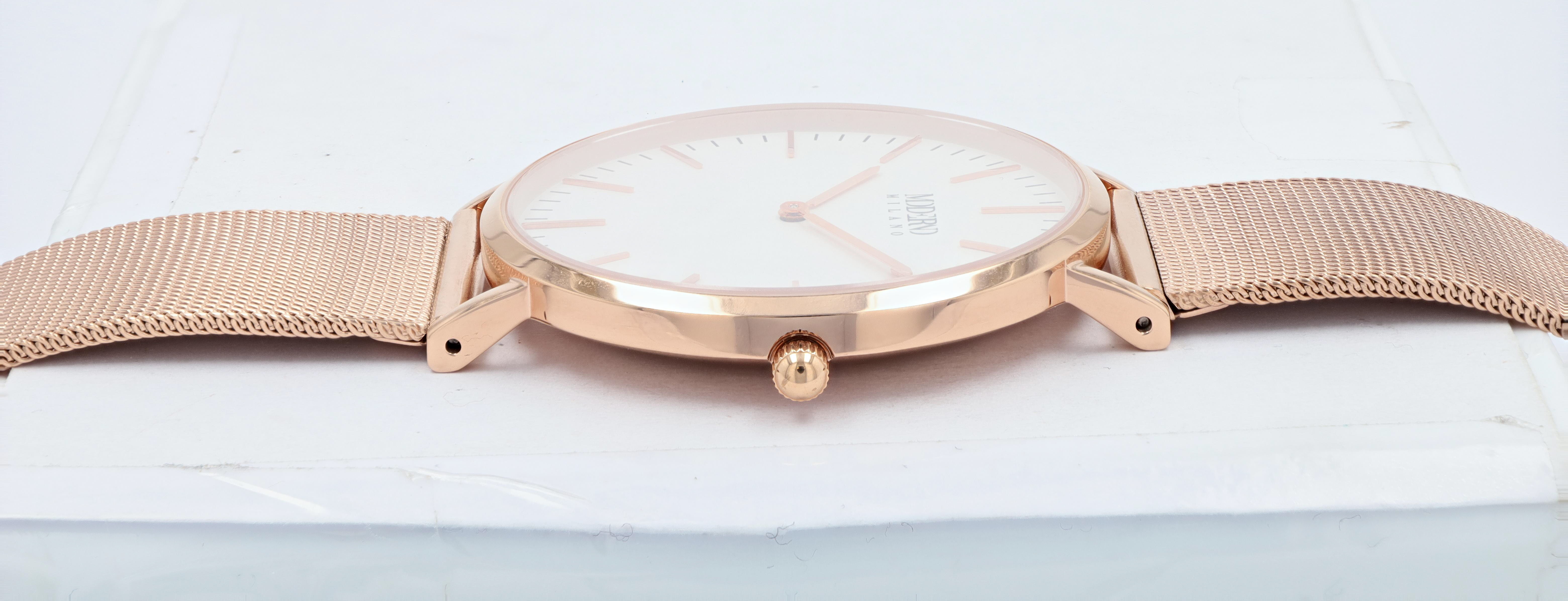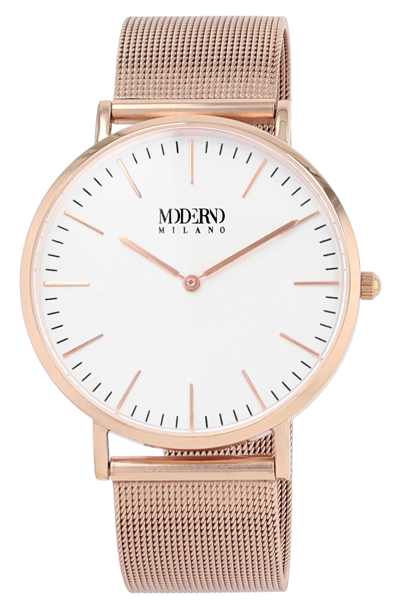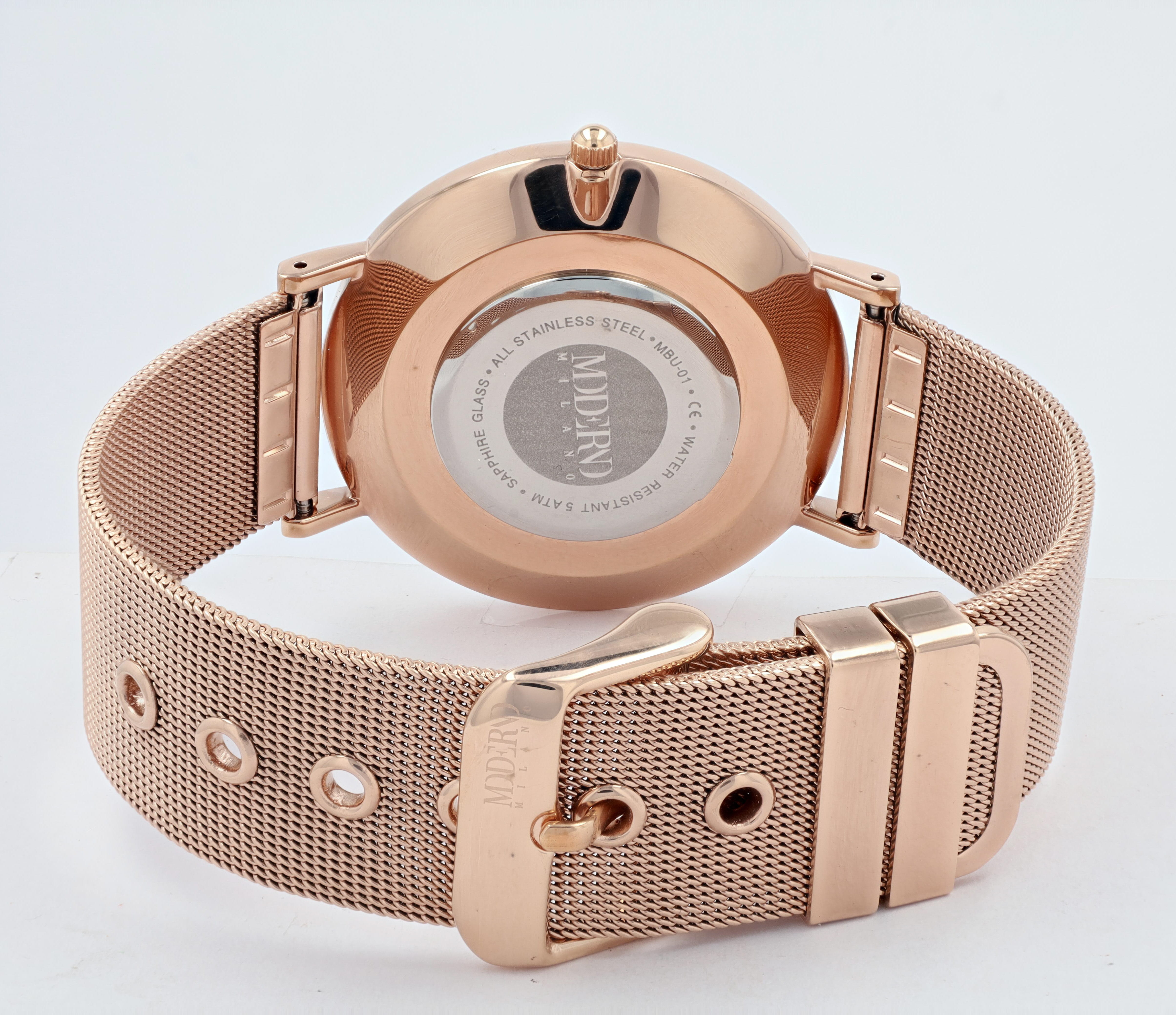 Productinformatie "Moderno Milano Edelstahl Herrenuhr Ø 41 mm, Meshband, Saphirglas, rosegoldfarben"