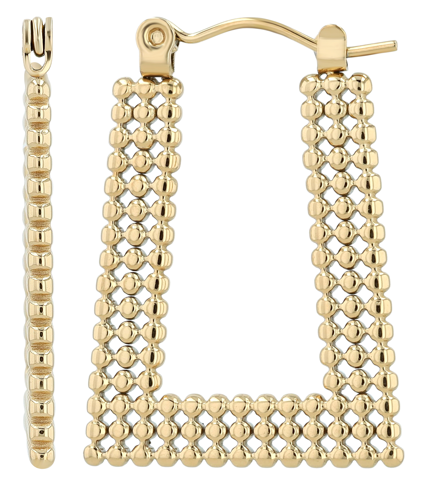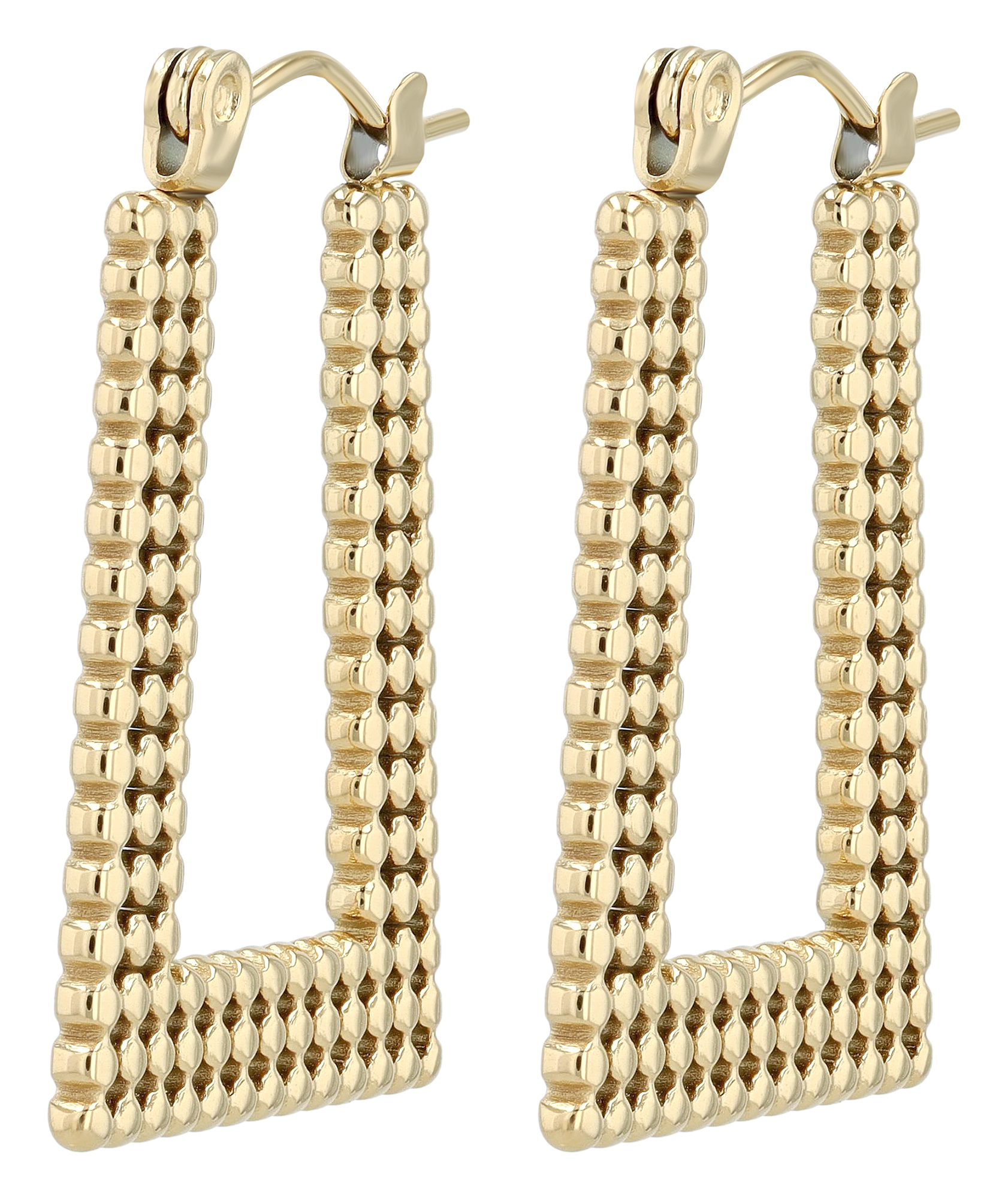 Deze uitzonderlijke hoepeloorbellen van het merk Akzent zijn gemaakt van roestvrij staal en maken indruk met hun moderne, stijlvolle rechthoekige vorm en stijlvolle esthetiek. Met hun afmetingen van 27 mm x 2 mm vormen ze een subtiele maar opvallende aanvulling op elke outfit. De hoogwaardige afwerking en het opvallende patroon zorgen voor een stijlvolle look, terwijl de praktische vouwsluiting zorgt voor een comfortabele pasvorm en veilige bediening. Perfect voor dagelijks gebruik of speciale gelegenheden - een stijlvol accessoire voor elke sieradenliefhebber.